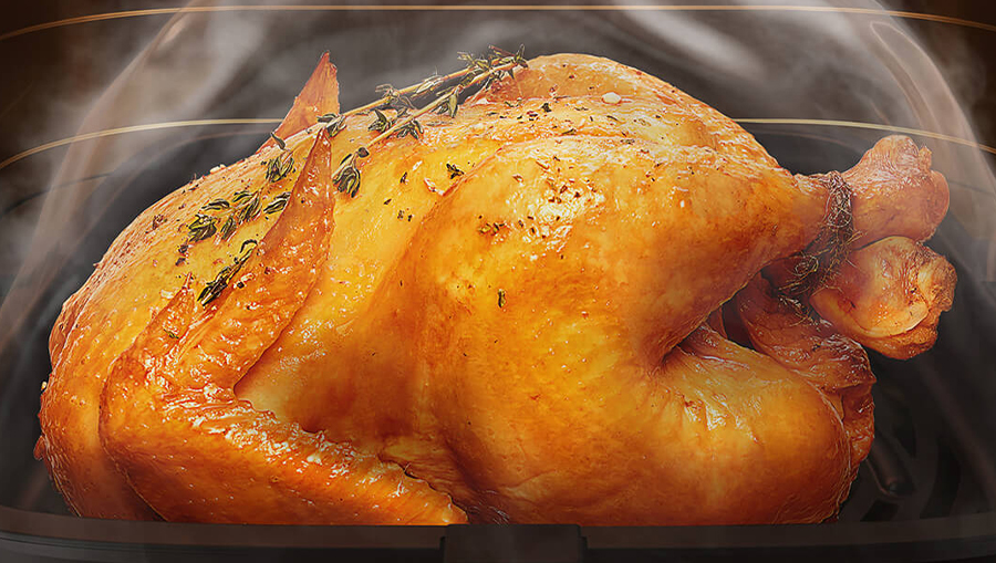 6.2-дюймовое смотровое окно позволяет следить за приготовлением в реальном времени, не открывая устройство. Прибор оснащен ручками управления, позволяющими легко настраивать время и температуру приготовления.