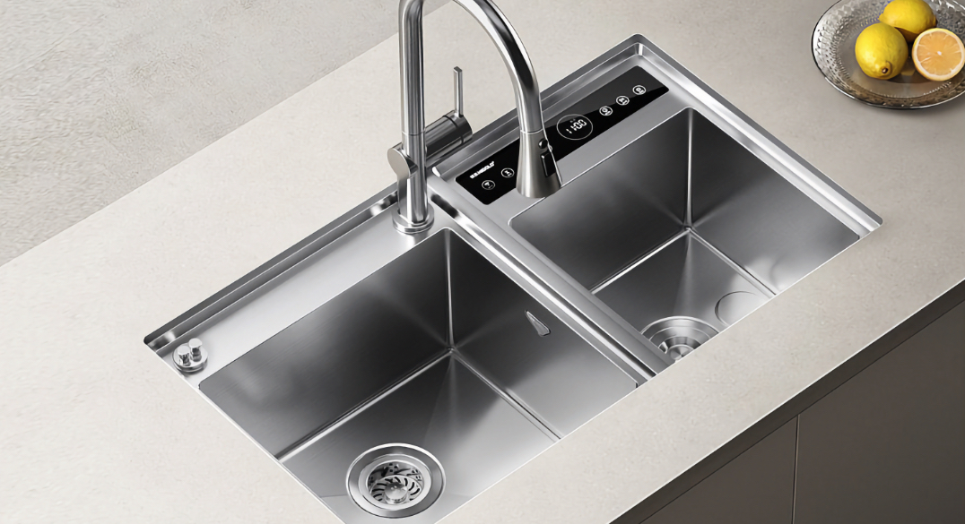 Умная раковина для кухни HIGOLD – еще одна новинка, появившаяся на краудфандинговой площадке Xiaomi Youpin, о которой сейчас расскажет GOODMi. Это полноценный смарт-продукт, который предлагает ряд интересных и высокотехнологичных решений. Раковина имеет две емкости: одна 26-литровая – по сути, это обычная классическая раковина, а вторая 18-литровая, которая и представляет собой нечто прогрессивное.  Во-первых, новое устройство (не думали, что когда-то доведется называть раковину устройством) поддерживает ультразвуковую очистку. Под воздействием высокочастотного ультразвука в воде образуются бесчисленные мелкие пузырьки, которые лопаются на поверхности изделия, чтобы произвести отрицательное давление, тем самым устраняя различную грязь и примеси с продуктов и других предметов, которые требуется вымыть. Отмечается, что таким способ мыть можно не только продукты, но и различные аксессуары, например, очки, и даже грязную посуду. Правда, есть примечание, что полноценно заменить посудомоечную машину раковина не сможет, она лишь способствует более простому оттиранию грязи с кухонной утвари. Кроме того, ультразвук обеспечивает быструю разморозку продуктов. Заявлено, что скорость оттаивания в 8 раз быстрее, чем при обычной разморозке при комнатной температуре. В качестве примера указано, что на разморозку 800 граммов свинины потребуется всего порядка 20 минут, тогда как естественно размораживание займет около 160 минут. Глубина каждой емкости умной раковины для кухни составляет 230 мм. По официальным данным, в 18-литровую часть поместится до 20 раков, около 20 картофелин, до 10 крабов или же 15 яблок. При этом вся раковина выполнена из устойчивой к царапинам и коррозии низкоуглеродистой нержавеющей стали SUS304, которая часто используется в медицине для изготовления хирургических инструментов и измерительных приборов, а также широко применяется в пищевой промышленности. На дне двух раковин нанесены четыре направляющие линии, которые не позволяют воде застаиваться в резервуарах и помогают ей стекать в слив, тем самым емкости быстрее сохнут и снижается риск размножения бактерий. На умной половине кухонной раковины предусмотрена сенсорная панель управления, с которой можно взаимодействовать мокрыми руками. Здесь находится кнопка питания, можно переключаться между режимами работы (мытье посуды или различных ингредиентов) и приостанавливать/запускать их, посмотреть текущее время и продолжительность работы девайса, а также отследить статус подключения Wi-Fi. Да, действительно, умная раковина HIGOLD подключается к смартфону, чтобы можно было управлять ею удаленно. К слову, пользователям экосистемы Xiaomi никакого нового приложения не потребуется – устройство работает с Mi Home. Через приложение можно контролировать расход воды, устанавливать время очистки и отслеживать уровень чистоты, а также настроить собственный план очистки. Всем, кто владеет китайским языком, даже доступна поддержка голосового управления. Можно произнести нужную команду, чтобы умная раковина HIGOLD приступила к работе. Например, «включи раковину», «мытье посуды», «чистка фруктов», «чистка мяса» и так далее. Правда, колонку с поддержку виртуального ассистента Xiao AI нужно приобретать отдельно, ведь в раковине нет встроенных микрофонов. Дополнительно можно приобрести версию с измельч