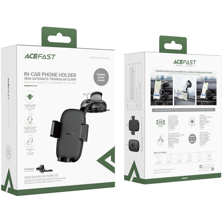 Держатель автомобильный ACEFAST D5 предусматривает крепление на лобовом стекле, торпедо или вентиляционной решетке. Он подходит для смартфона с диагональю 4.5-6.7 дюйма. Благодаря упорам с боковых сторон держатель обеспечивает прочную фиксацию мобильного устройства и удобный просмотр информации на экране в процессе езды на автомобиле. Конструкция модели ACEFAST D5 обеспечивает свободное вращение на 360°. Изделие выполнено из прочного пластика черного цвета, который гарантирует прочность и практичность в эксплуатации.
