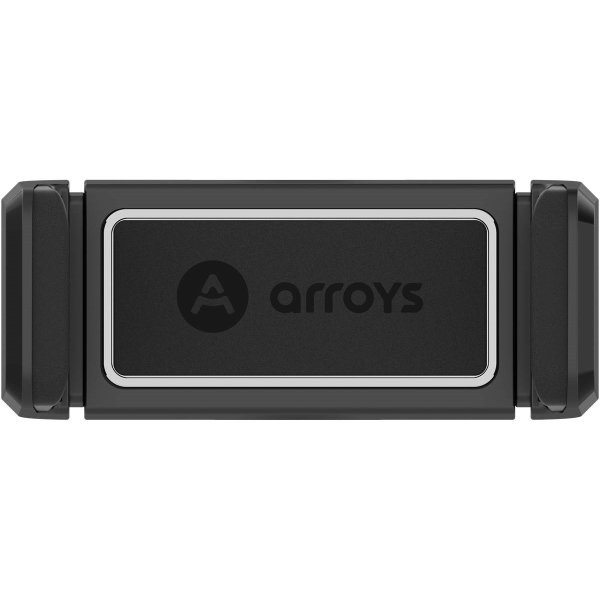 Arroys Dash-C1 - держатель для смартфона на присоске, может устанавливаться на торпедо и стекло. Он имеет механический зажим смартфона, который подходит для устройств с размером экрана от 55 до 85 мм. Зажим закрывается автоматически при установке гаджета за счет нажатия кнопки корпусом смартфона. Раздвинуть зажим можно легко пальцами одной руки. Внутри захвата имеются резиновые вставки для улучшения сцепления корпуса смартфона и держателя.