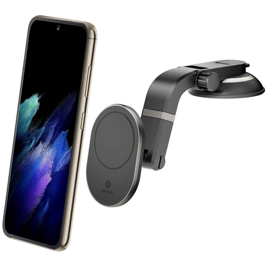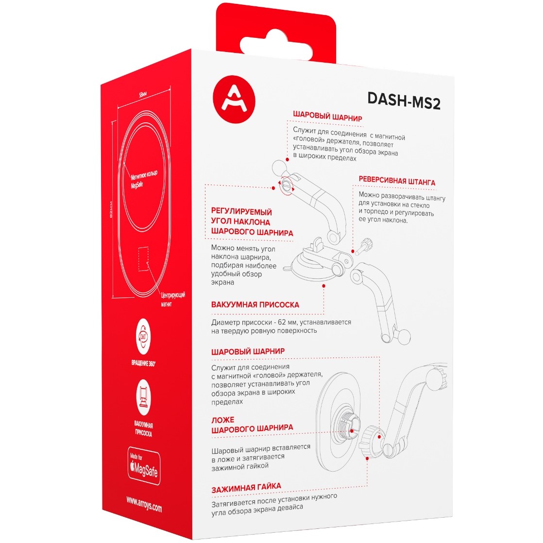 Arroys Dash-MS2 предназначен для использования с телефонами или чехлами с креплением Magsafe. Такое крепление используется в iPhone, начиная с серии 12 и в чехлах для iPhone. Встроенное в держатель магнитное кольцо обеспечивает крепление телефона на держателе без дополнительных приспособлений, а магнит в нижней части держателя фиксирует положение телефона по вертикали.
