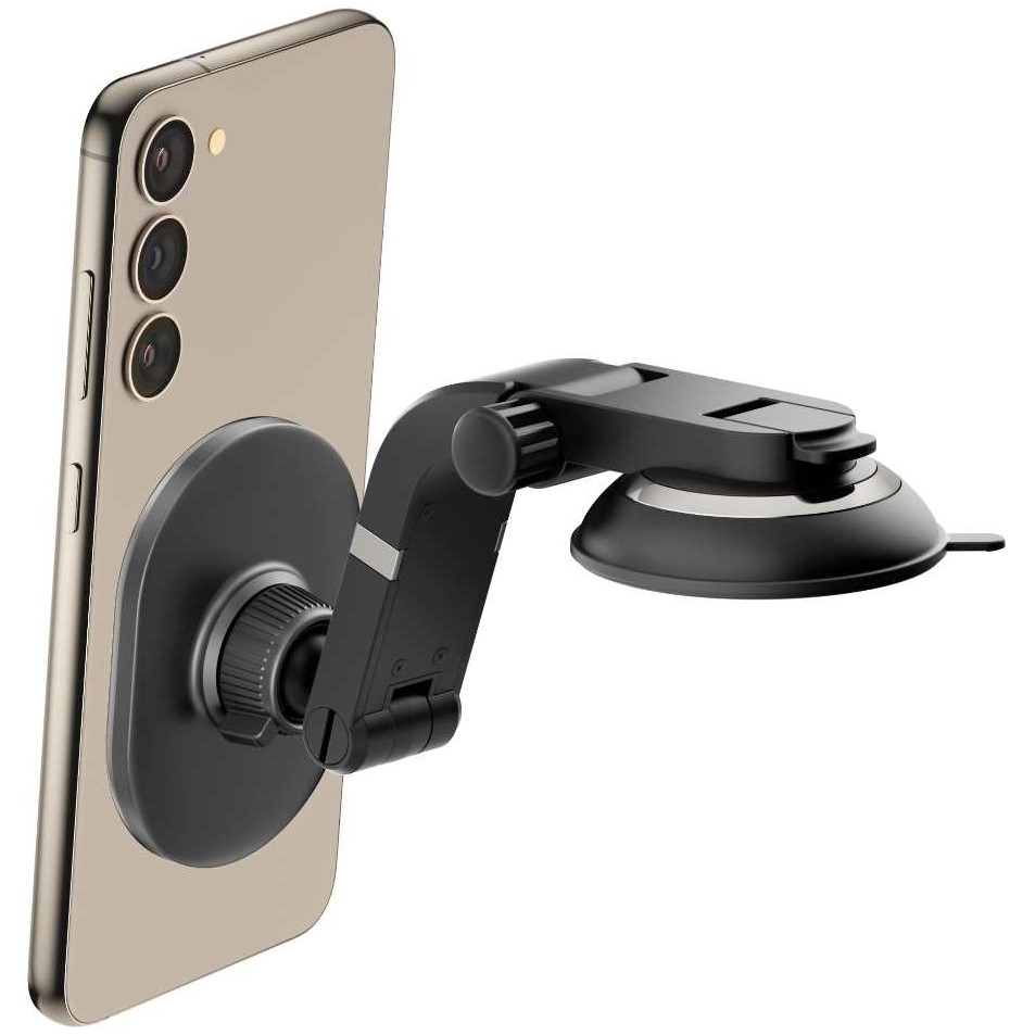 Держатель крепится на лобовое стекло или приборную панель с помощью вакуумной присоски диаметром примерно 62 мм.