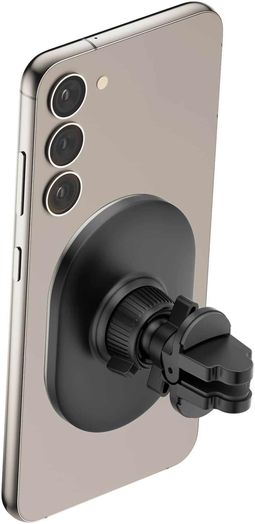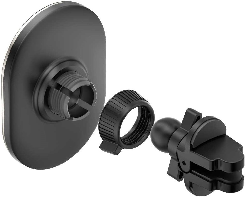 В комплект держателя входит круглая металлическая пластина, которая позволяет использовать держатель не только с iPhone или чехлами Magsafe, но и любыми другими телефонами. Она крепится на двухсторонний скотч на заднюю крышку телефона либо на тыльную часть чехла. Внимание! Мощности притяжения магнитов не хватает, чтобы использовать пластину под чехлом. Пластина облицована пластиком темного цвета, что улучшает не только внешний вид, но позволяет избежать царапин на предметах в сумке, если она используется для переноски телефона.