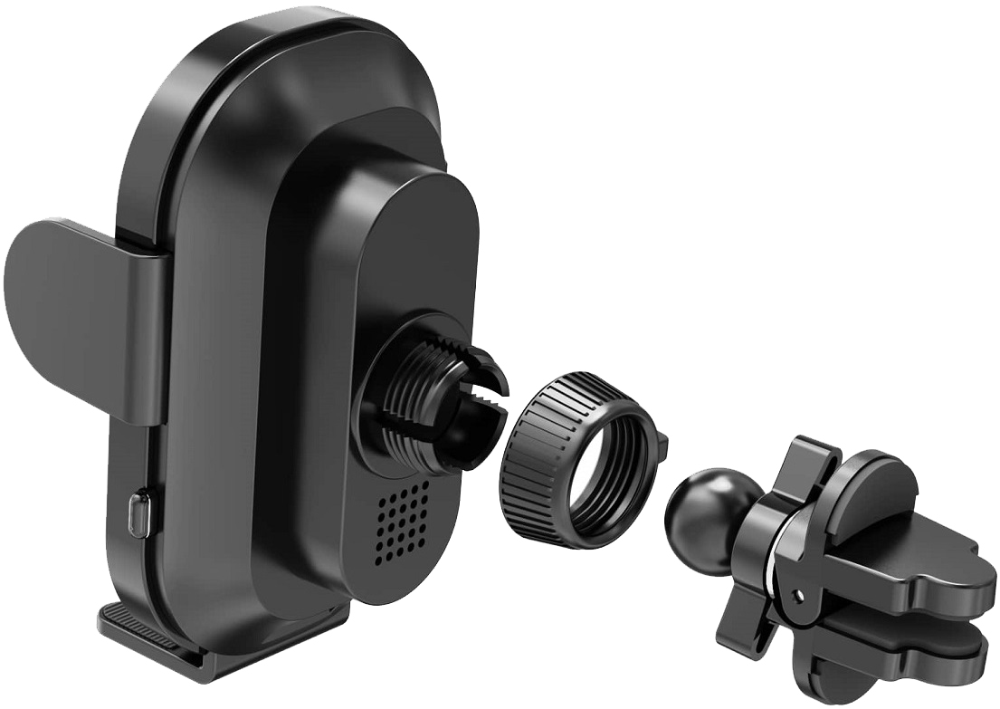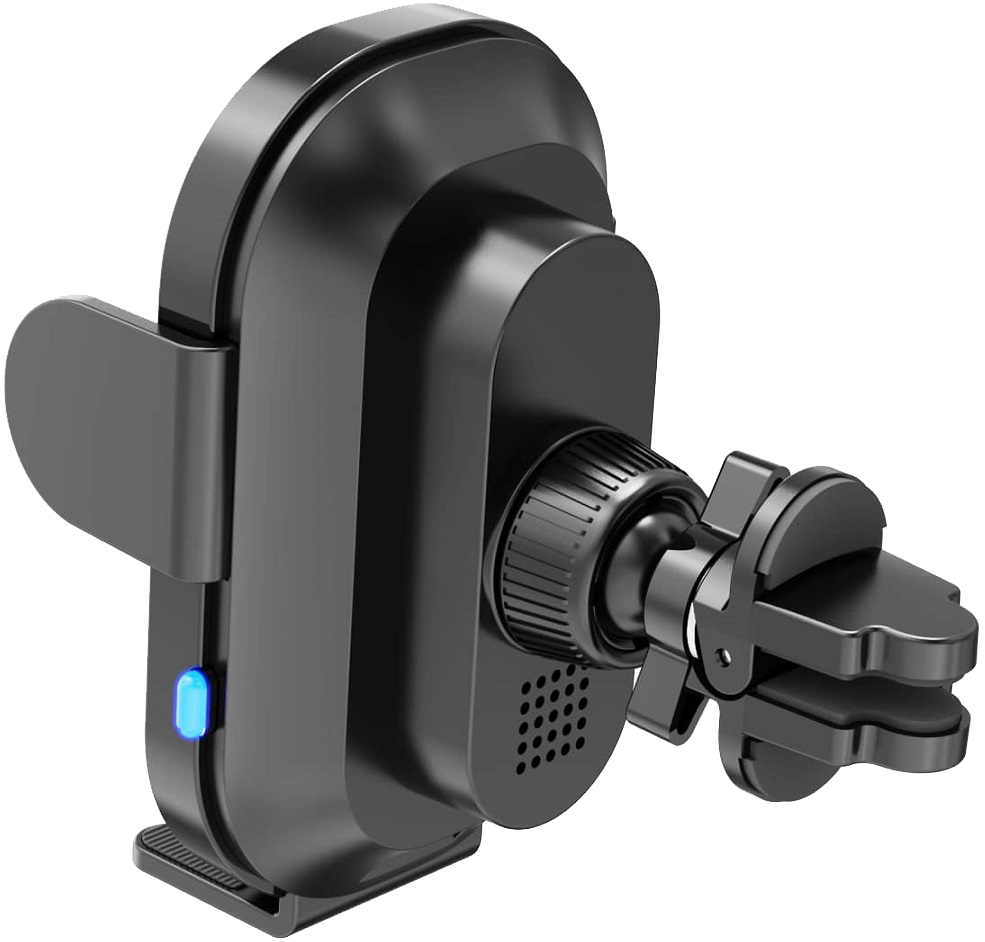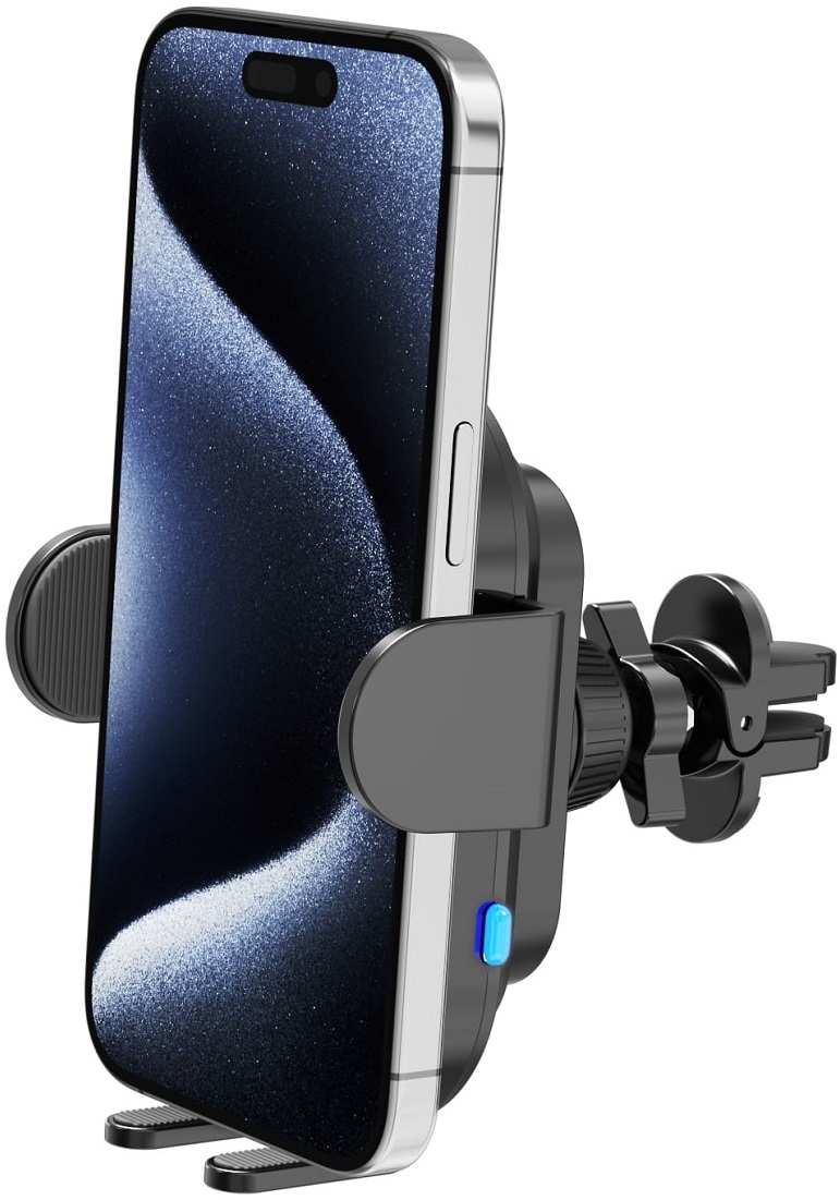 Открывается держатель нажатием многофункциональной кнопки справа. При установке телефона с опцией беспроводного заряда зажим закроется автоматически. Если в телефоне такой опции нет, то закрыть держатель можно повторным нажатием многофункциональной кнопки.