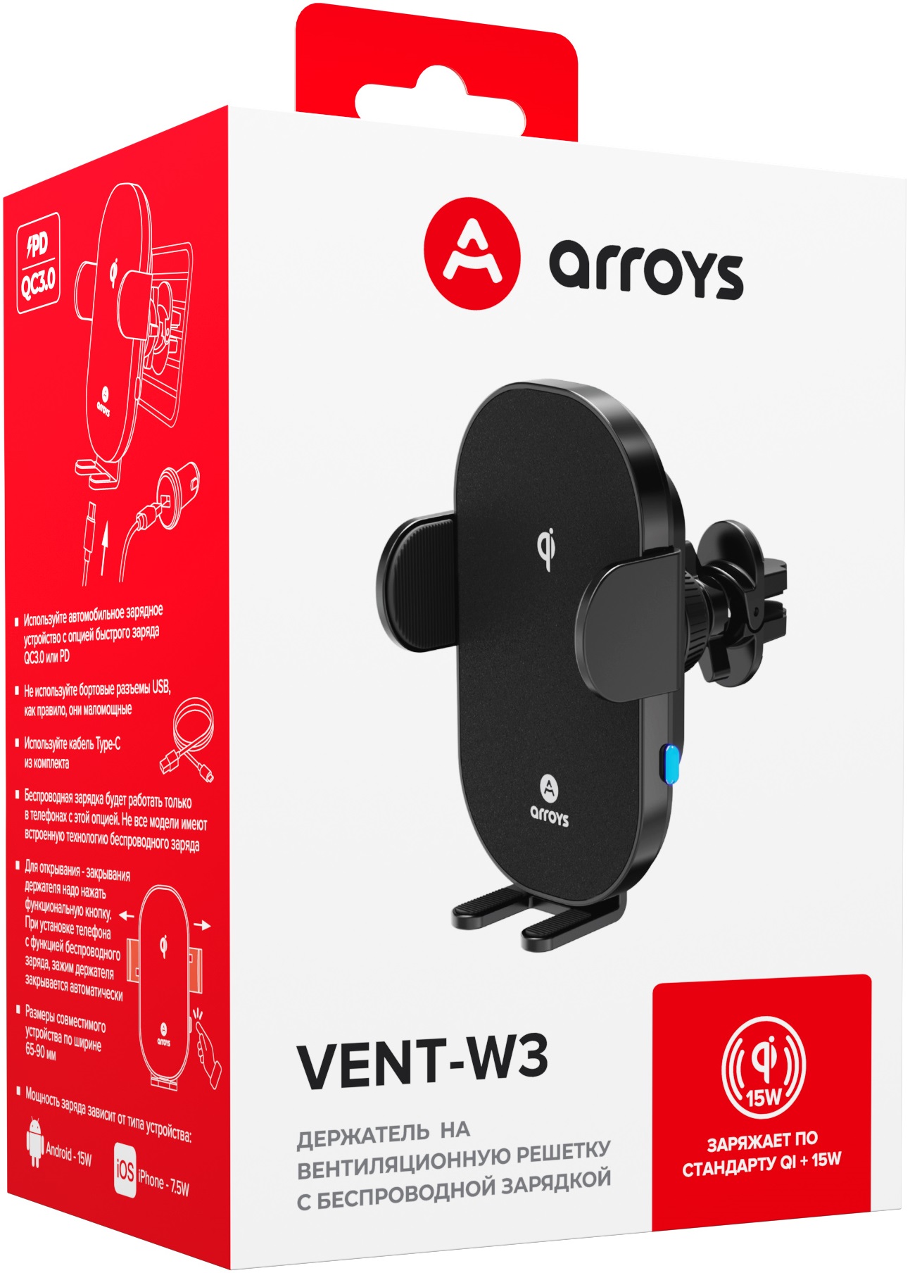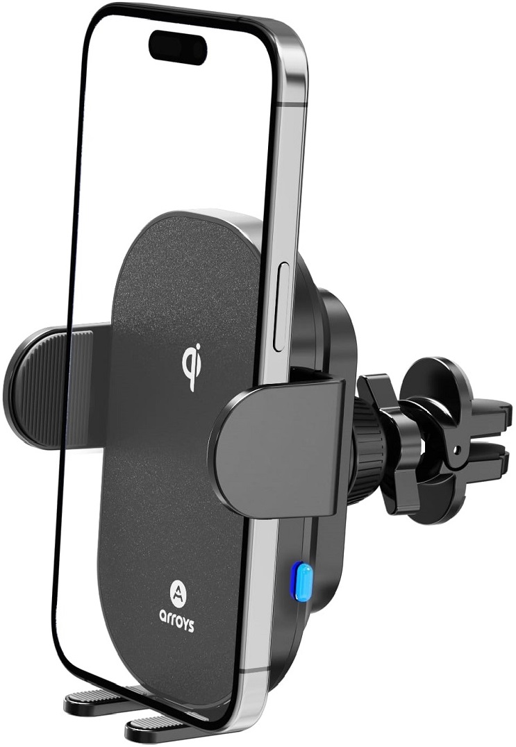 Arroys выпустил новую модель Vent-W3 - держатель для смартфона с креплением в вентиляцию и опцией беспроводной зарядки.
