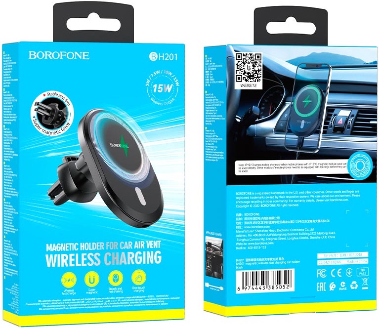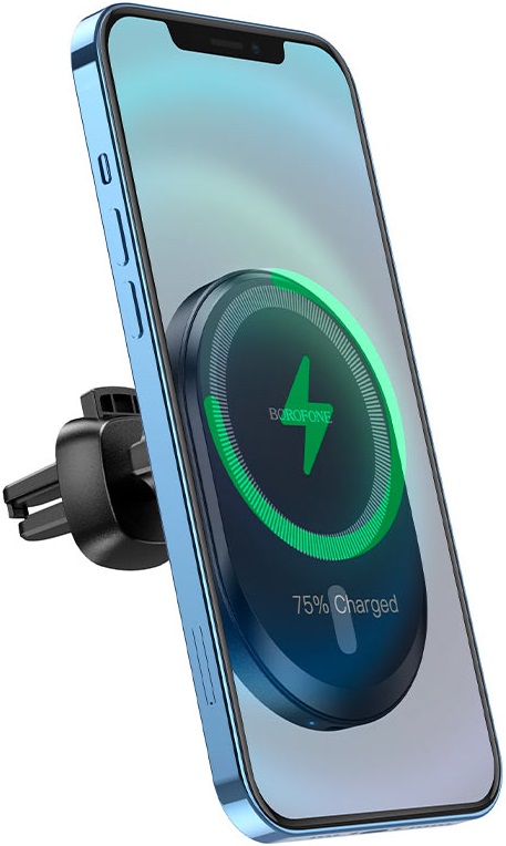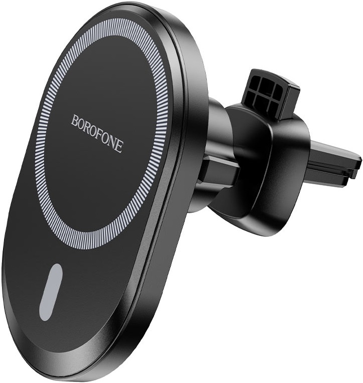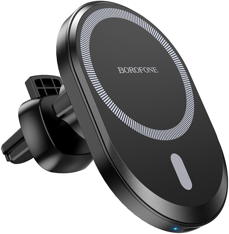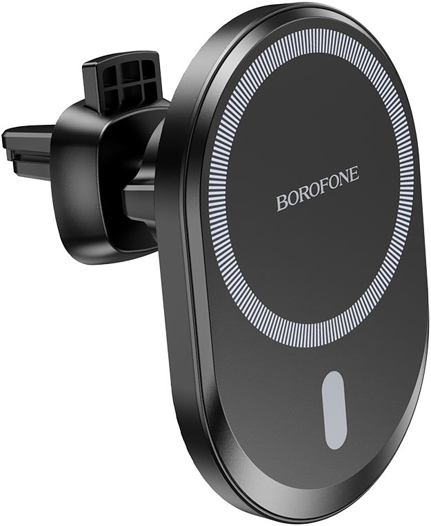 BH201 - это автомобильный держатель от бренда BOROFONE, лидера на рынке аксессуаров для мобильных. BH201 является современным решением среди автомобильных держателей. Его удобство заключается в двух основных моментах: магнитный способ фиксации телефона (MagSafe) и беспроводная зарядка. Данный гаджет разработан для устройств, поддерживающих технологию беспроводного заряда. Устройство надежно закрепляется в дефлекторе (воздуховоде). Стильный дизайн прекрасно дополнит любой современный автомобиль. Кабель USB - Type-С для самого устройства входит в комплект.
