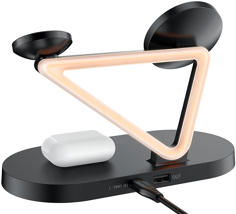 Беспроводное зарядное устройство ACEFAST E9 с выходной мощностью 15 Вт способно одновременно восполнять энергию смартфона, наушников, умных часов. LED-подсветка уведомляет о начале работы аксессуара.
