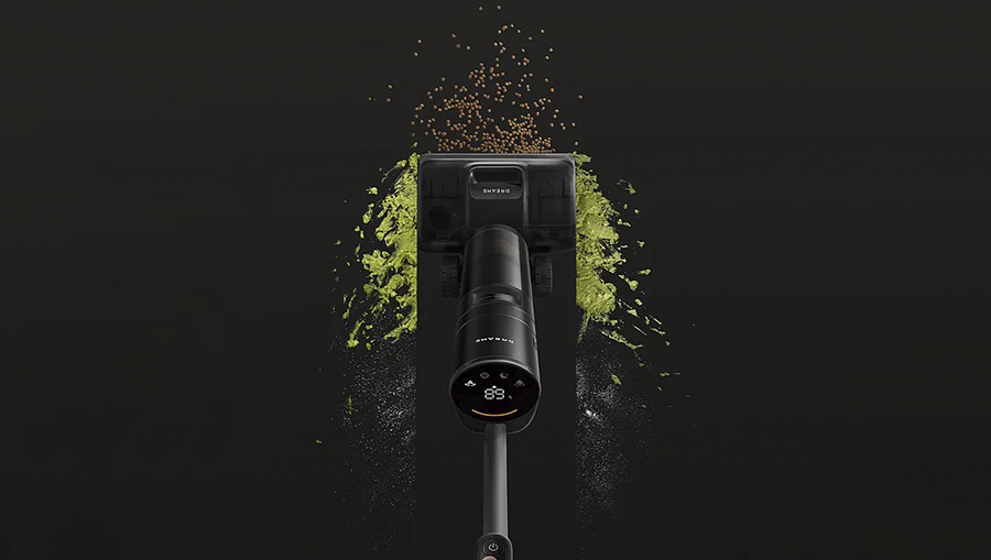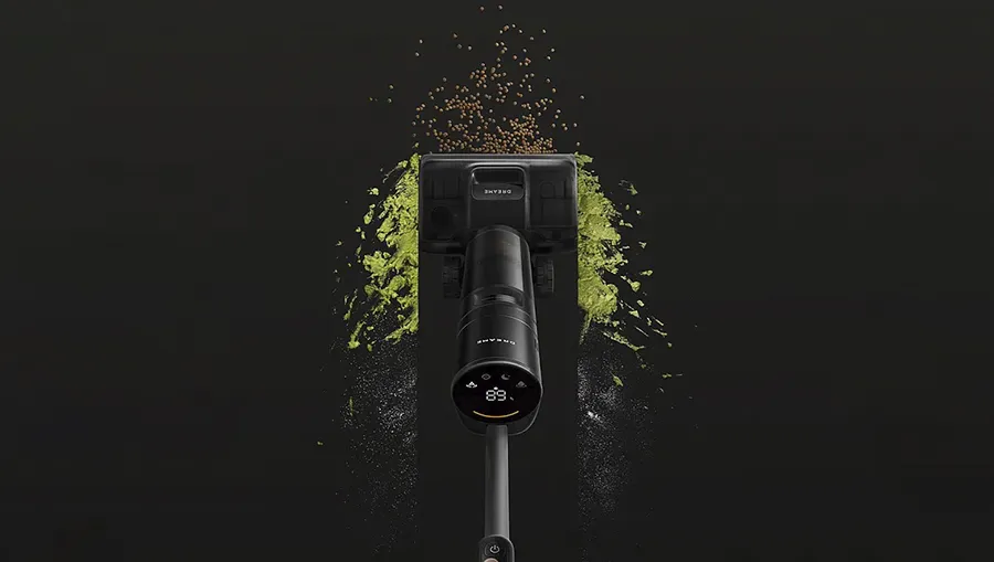 Беспроводной пылесос Dreame H12 Dual FlexReach оснащен высокопроизводительным двигателем, обеспечивающим мощность всасывания до 23 000 Па — один из самых высоких показателей среди вертикальных беспроводных пылесосов. Эта впечатляющая сила всасывания позволяет устройству легко справляться с самыми сложными загрязнениями: удалять не только поверхностный мусор, такой как крошки, пыль и волосы, но и глубоко въевшиеся пятна, жирные загрязнения на кухне, остатки пищи, включая спагетти, рис и кофейную гущу, а также влажные пятна на полу.
