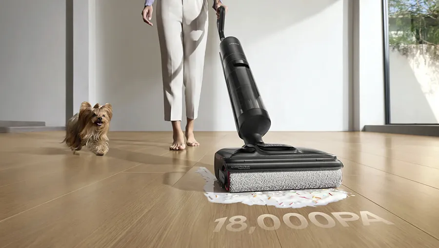 С Dreame H12 Pro Flex больше не придется разделять сеанс на влажную уборку со шваброй и сухую с пылесосом или веником. Здесь высокая сила всасывания 18000 Па отлично справляется с мусором любой структуры. А скоростной бесщеточный двигатель позволяет тщательно протирать поверхность на протяжении 50 минут.