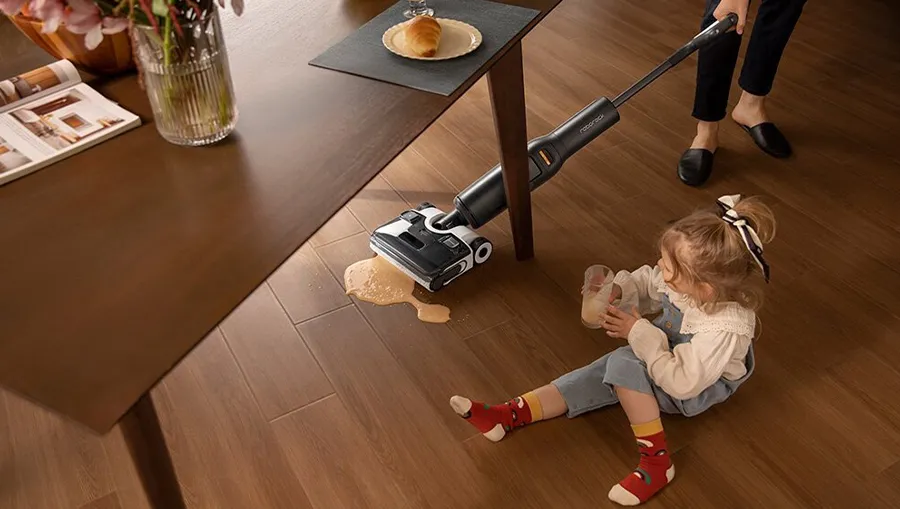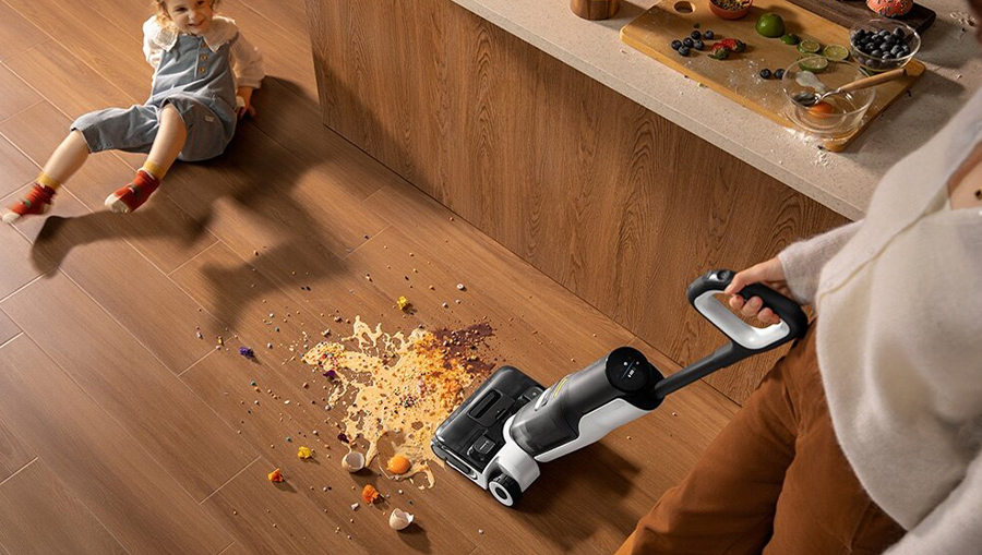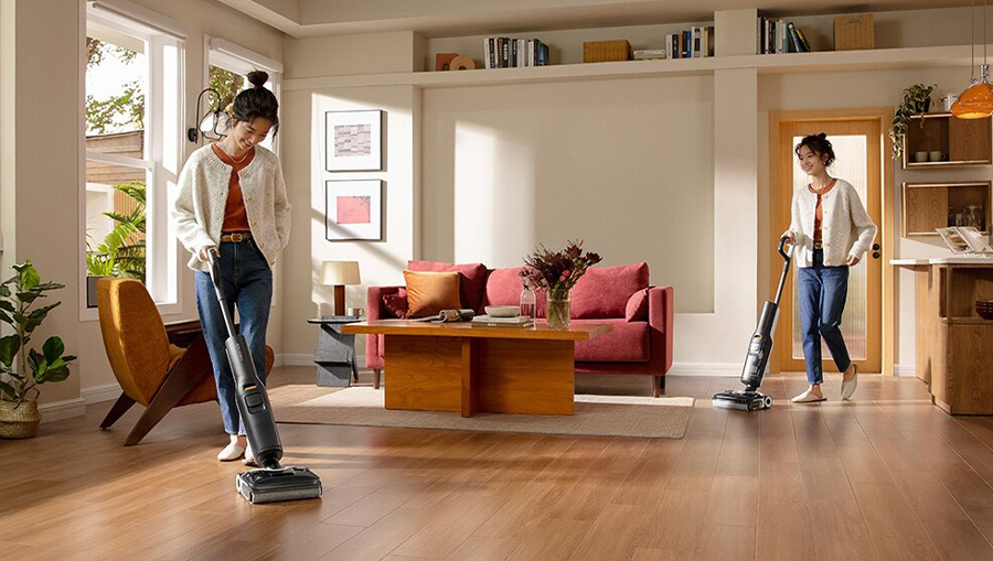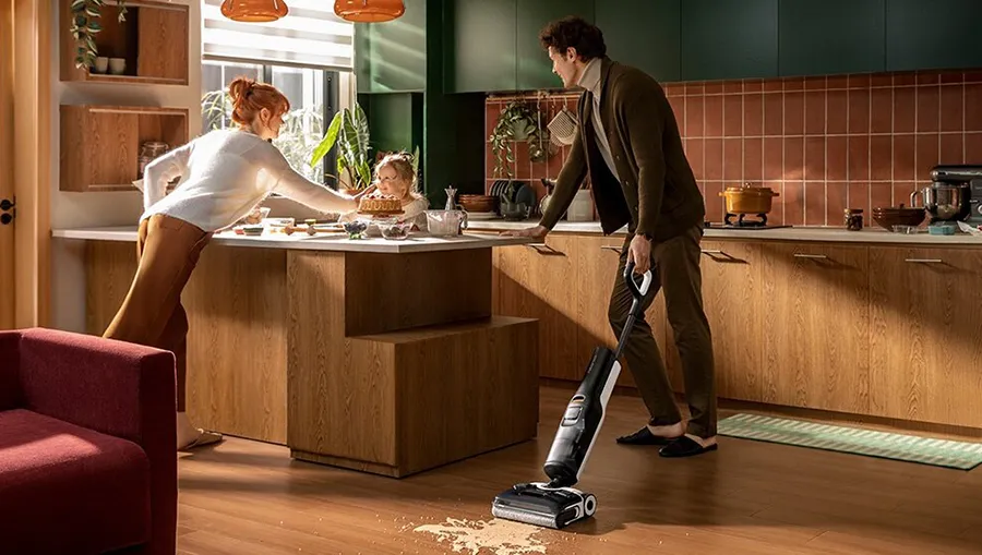Самоочистка горячей водой позволяет поддерживать высокий уровень чистоты встроенной швабры без усилий и контакта с загрязненным инструментами. Пылесос для влажной и сухой уборки удаляет жир и грязь, а двунаправленная очистка гарантирует глубокую мойку швабры. Благодаря быстрой сушке при температуре 90°C девайс вскоре снова готов к использованию. Доступно два режима сушки: быстрая за 5 минут или тихая за 20 минут, что позволяет быстро вернуться к наслаждению чистым пространством.