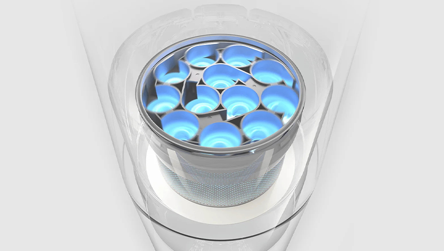 Пылесос оснащен передовой технологией 12-конусной циклонной сепарации, которая эффективно удаляет пыль из воздуха. Во время уборки создается мощная центробежная сила, направляющая крупные частицы вниз в пылесборник, что предотвращает их повторное попадание в воздушный поток. Эта система обеспечивает постоянную мощность всасывания и защищает фильтры от засорения, значительно продлевая срок службы устройства. Благодаря этой технологии, пылесос сохраняет оптимальную производительность, гарантируя высококачественную очистку любых поверхностей без снижения силы всасывания.