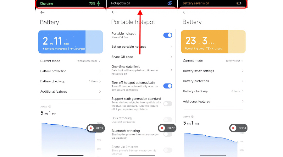 Теперь Xiaomi тоже решила поучаствовать в данной игре, сделав нечто похожее на айфоновский динамический остров в HyperOS. Китайская компания сейчас никак не пиарит новую опцию, которая работает, например, когда активируется точка доступа, смартфон подключается к зарядному устройству, включается режим экономии батареи или бесшумный режим.