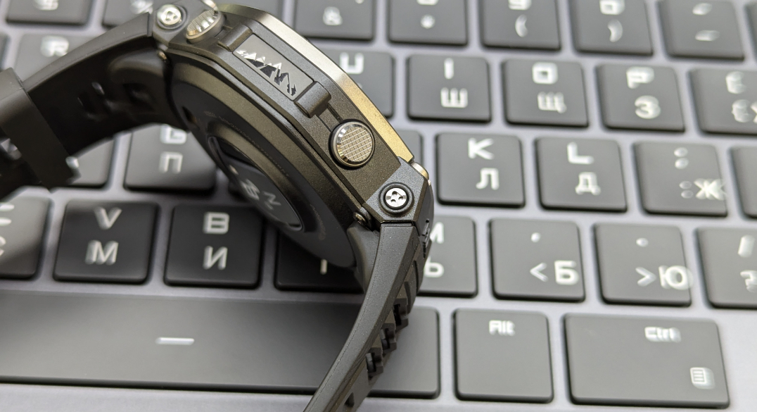 Отдельно стоит отметить физические кнопки. Их здесь четыре, они расположены вокруг восьмиугольного корпуса и соответствуют действиям «вверх», «вниз», «выбор» и «назад». Это крайне удобно, особенно в условиях холода, когда сенсор может повести себя некорректно, или во время плавания, когда руки мокрые. Очень удачное решение для гаджета, который позиционируется как устройство для экстремальных условий.