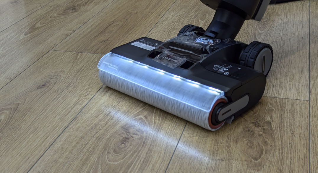 Новая модель также оборудована встроенными светодиодами, которые предназначены для более эффективного освещения напольного покрытия во время уборки, что особенно ценно в темных уголках помещения, например, под мебелью. Кроме того, в основании, за щеткой, имеется встроенное лезвие, и это особенно полезный инструмент: он соскребает грязь, шерсть и волосы с роликовой щетки во время уборки, гарантируя, что она остается чистой на протяжении всего цикла. Из-за того, что это лезвие «плавающее», оно всегда плотно прижимается к валику, чтобы гарантировать устранение загрязнений. Разумеется, вся эта грязь не падает на пол, а тут же втягивается пылесосом. В отличие от большинства конкурирующих аналогов, Dreame H13 Pro Wet and Dry Vacuum оснащен толстыми колесами вместо миниатюрных роликов, что значительно повышает маневренность устройства. Технология, именуемая GlideWheel, позволяет легко маневрировать вперед и назад, несмотря на не самый малый вес девайса (5,6 кг без учета веса резервуаров для воды).