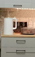 В серии Mijia Electric Kettle используются только гипоаллергенные материалы самого высокого качества. Чайник выполнен по формату термоса – снаружи прочный пластик, внутри – стальная колба. Быстрее закипание, лучше сохранение тепла. Форма чайника – колонна диаметром 13,5 см. Крышка легко откидывается, а внутренняя часть крышки укреплена стальным кольцом.