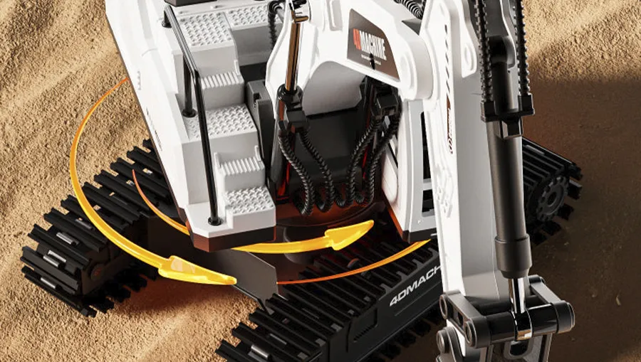 Конструкция 4D Machine поддерживает неограниченное вращение кабины и манипулятора на 360 градусов относительно шасси, обеспечивая полный рабочий радиус без необходимости лишних перемещений гусеничной базы. Это позволяет оператору эффективно работать в стесненных условиях, перемещая грунт из одной точки в другую плавным поворотом корпуса. Такая функциональность учит ребенка рационально использовать пространство и планировать логистику на строительной площадке, обеспечивая максимальную свободу действий и профессиональный подход к выполнению игровых миссий.