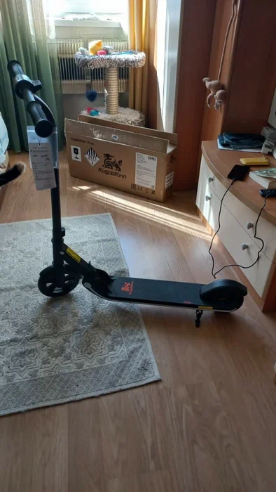 Чтобы поехать, необходимо оттолкнуться, самокат не сорвется с места при случайном нажатии на курок газа. На деке – противоскользящее покрытие, что создает хорошее сцепление с обувью.