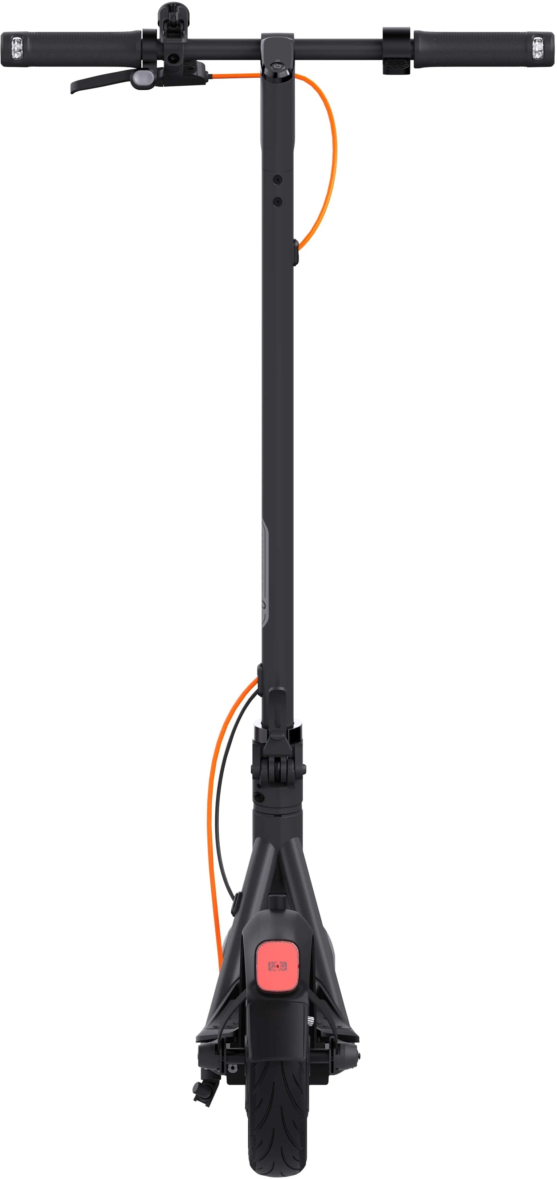 Для комфортного и безопасного передвижения в вечернее время, электросамокат оснащён яркой светодиодной фарой мощностью 2,1 Вт, которая освещает дорогу на 13,5 метров вперёд. Благодаря тому, что угол луча в ширину составляет 30° и направлен вниз, он не ослепляет встречных пешеходов и транспорт. Также имеется стоп-сигнал сзади и боковые световые отражатели, сертифицированные по стандарту E-MARK.