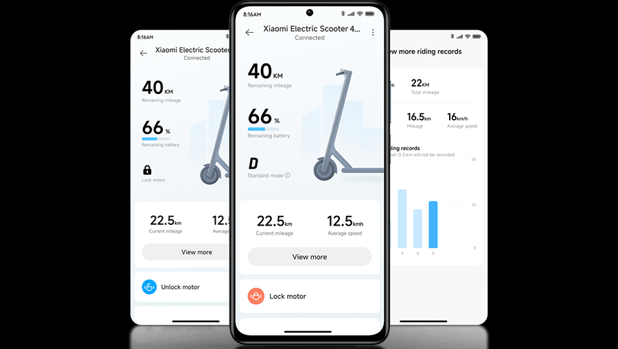 Подключите свой электросамокат Xiaomi 4 Pro Gen2 к приложению Mi Home/Xiaomi Home через Bluetooth, чтобы не только просматривать информацию о состоянии, заряде батареи и пробеге, но также управлять освещением, блокировать двигатель и настраивать самокат по своему усмотрению. Вся возможная функциональность прямо у вас на ладони!