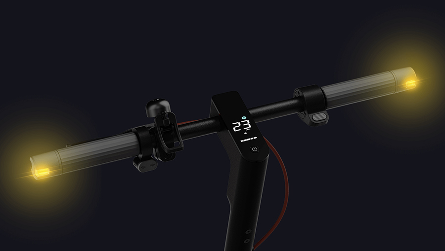 Легко держите ситуацию под контролем. Приборная LED-панель расположена на руле под удобным для пользователя углом, что позволяет водителю видеть текущую скорость, оставшийся заряд аккумулятора, индикаторы сигналов поворота и состояние самоката во время поездки. А чтобы переключиться между различными режимами скорости, достаточно просто дважды нажать кнопку питания в нижней части дисплея.