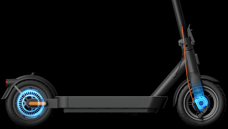 Наслаждайтесь более плавным движением и лучшей устойчивостью благодаря модернизированным 10-дюймовым шинам. Их поверхность была увеличена с 54 мм до 60 мм, что обеспечило больший объем и улучшенную амортизацию. Кроме того, за счет увеличенной площади контакта шины с землей эффективно улучшается сцепление при наклоне во время поворотов, что в целом обеспечивает более стабильную и безопасную езду.