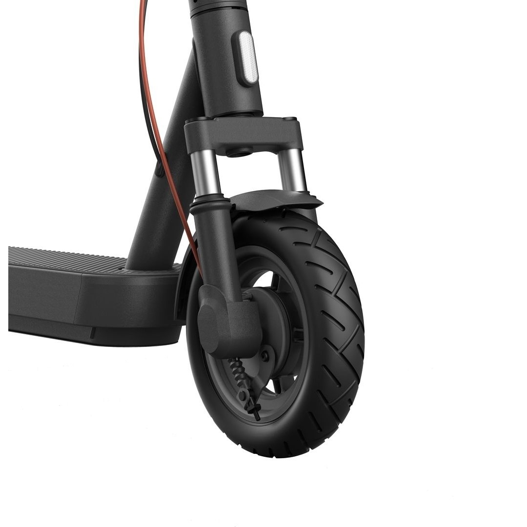 Благодаря передним двойным пружинным амортизаторам, которые эффективно поглощают неровности дороги, вы сможете комфортно передвигаться по гальке и брусчатке. 10-дюймовые бескамерные шины с улученной амортизацией не боятся проколов и не требуют обслуживания. Шины с увеличенной площадью контакта и высоким сцеплением легко едут по дорожному полотну и лучше входят в повороты, повышая комфорт и безопасность во время езды.