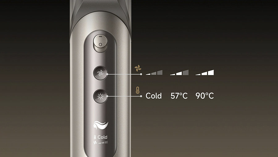 Интеллектуальный дисплей фена Dreame Dazzle AZD20A в режиме реального времени показывает важную информацию о текущей температуре нагрева и интенсивности воздушного потока. Это позволяет пользователю всегда быть в курсе рабочих параметров устройства и контролировать процесс укладки с максимальной точностью. Благодаря удобному интерфейсу, переключение между разными режимами работы происходит всего одним касанием, что значительно упрощает управление феном и делает укладку быстрым и комфортным процессом.
