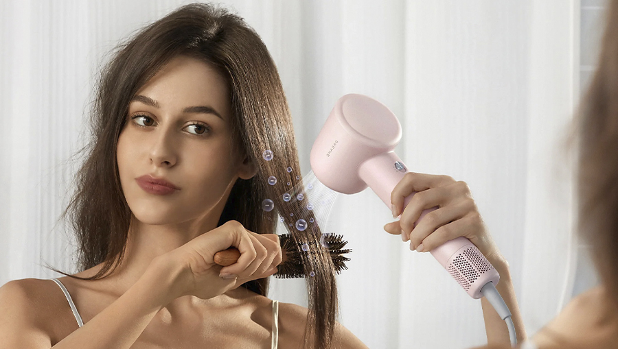 Фен для волос Dreame Hair Gleam отличается продуманной конструкцией воздушного канала и оснащен встроенным генератором, который выпускает 200 миллионов отрицательных ионов. Благодаря этому фен эффективно устраняет статическое электричество, уменьшая пушистость и делая волосы более гладкими и послушными. Такая ионная технология обеспечивает бережный уход за волосами, улучшает их текстуру и придает им здоровый блеск, позволяя достичь профессионального результата укладки прямо дома.