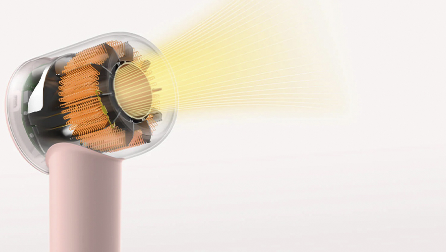 В отличие от обычных фенов, которые сушат волосы за счет высокой температуры, в Dreame Hair Gleam применяется инновационная технология с бесщеточным двигателем, работающим на скорости 110000 об/мин и мощностью 1600 Вт. Благодаря этому создается мощный и при этом щадящий поток воздуха, который быстро и эффективно сушит волосы, не повреждая их структуру. Такая технология обеспечивает более бережный уход, сохраняя здоровье и естественный блеск ваших локонов, а также значительно сокращает время сушки.