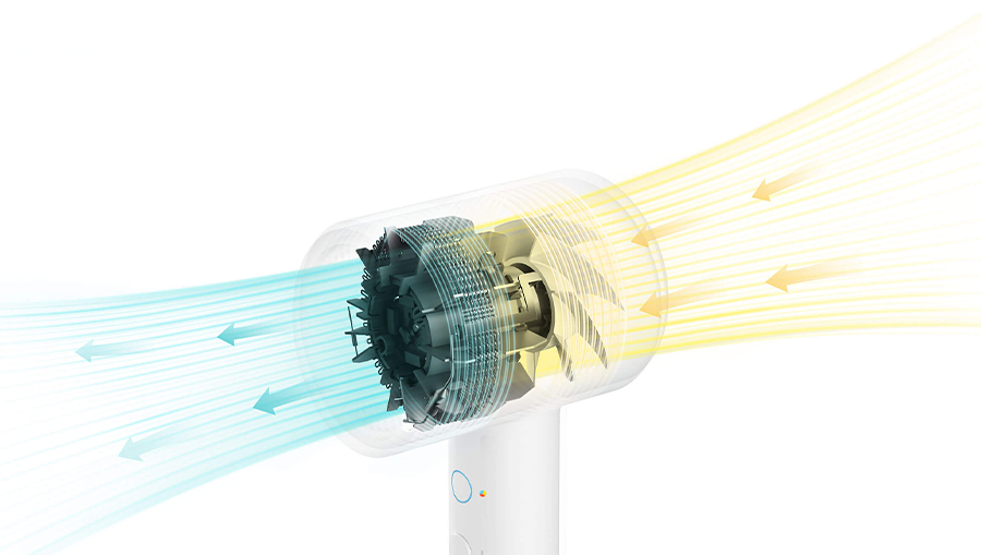 Фен обеспечивает интеллектуальный и точный контроль температуры благодаря встроенному датчику NTC, каждые 60 секунд передаются данные на микропроцессор. Регулировка в реальном времени позволяет поддерживать оптимальную температуру воздушного потока на уровне 57°C.