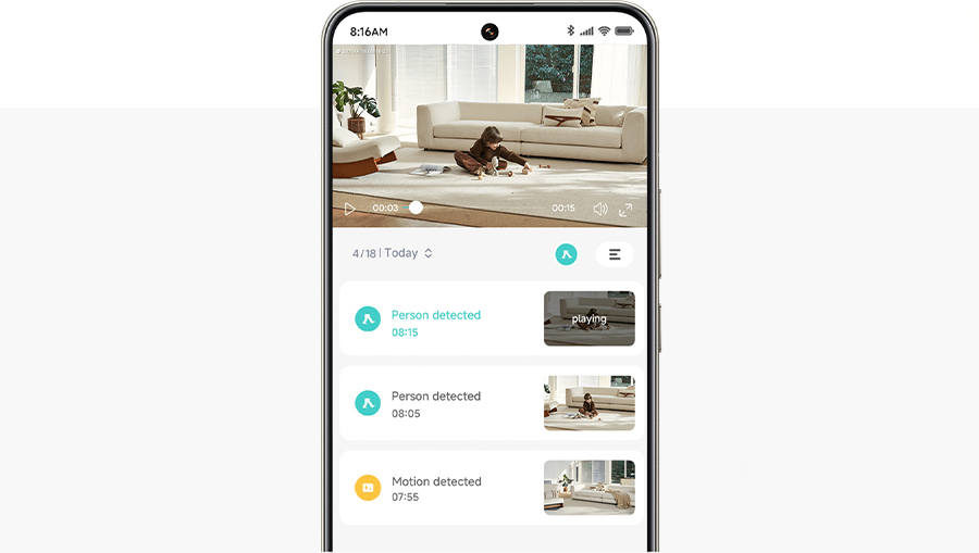 Камера оснащена функцией двусторонней голосовой связи, что позволяет вам оставаться на связи с близкими в любое время. Встроенный стереодинамик большого диаметра обеспечивает высокое качество звука, передавая речь четко и ясно. Интеллектуальный микрофон с функцией шумоподавления минимизирует фоновые шумы, создавая ощущение живого разговора, как будто вы находитесь рядом с собеседником.