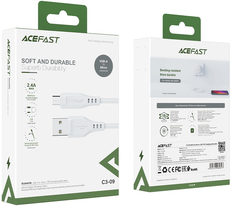 Кабель Acefast C3-09 MicroUSB 1.2м White
