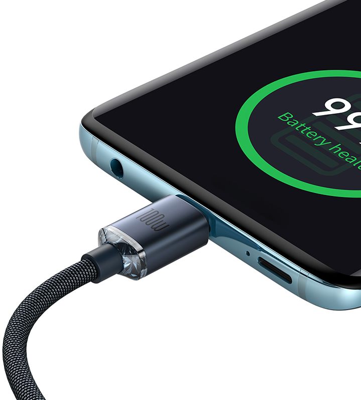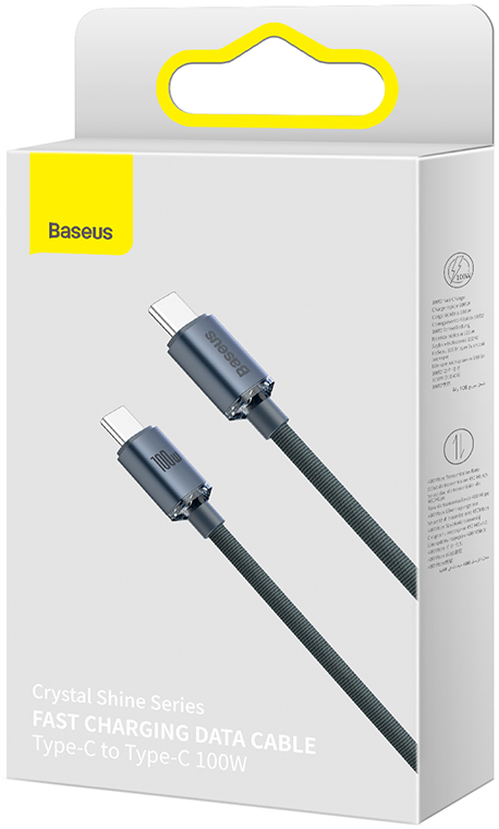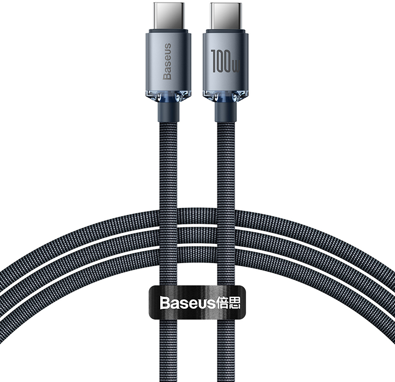 Baseus Crystal Shine Series Fast Charg Cable Type-C to Type-C 100W 1.2m - это кабель для передачи данных и быстрой зарядки электронных устройств с симметричным разъёмом Тип С. Заряжает смартфоны, планшеты, портативные игровые консоли и ноутбуки. Мощность зарядки через кабель достигает 100 Вт.