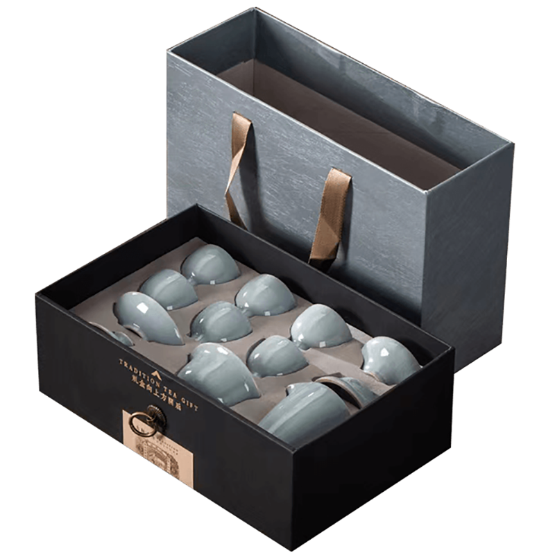 Комплект состоит из чахая, шести чашек, ситечка с подставкой, гайваня и блюдечка для гайваня.