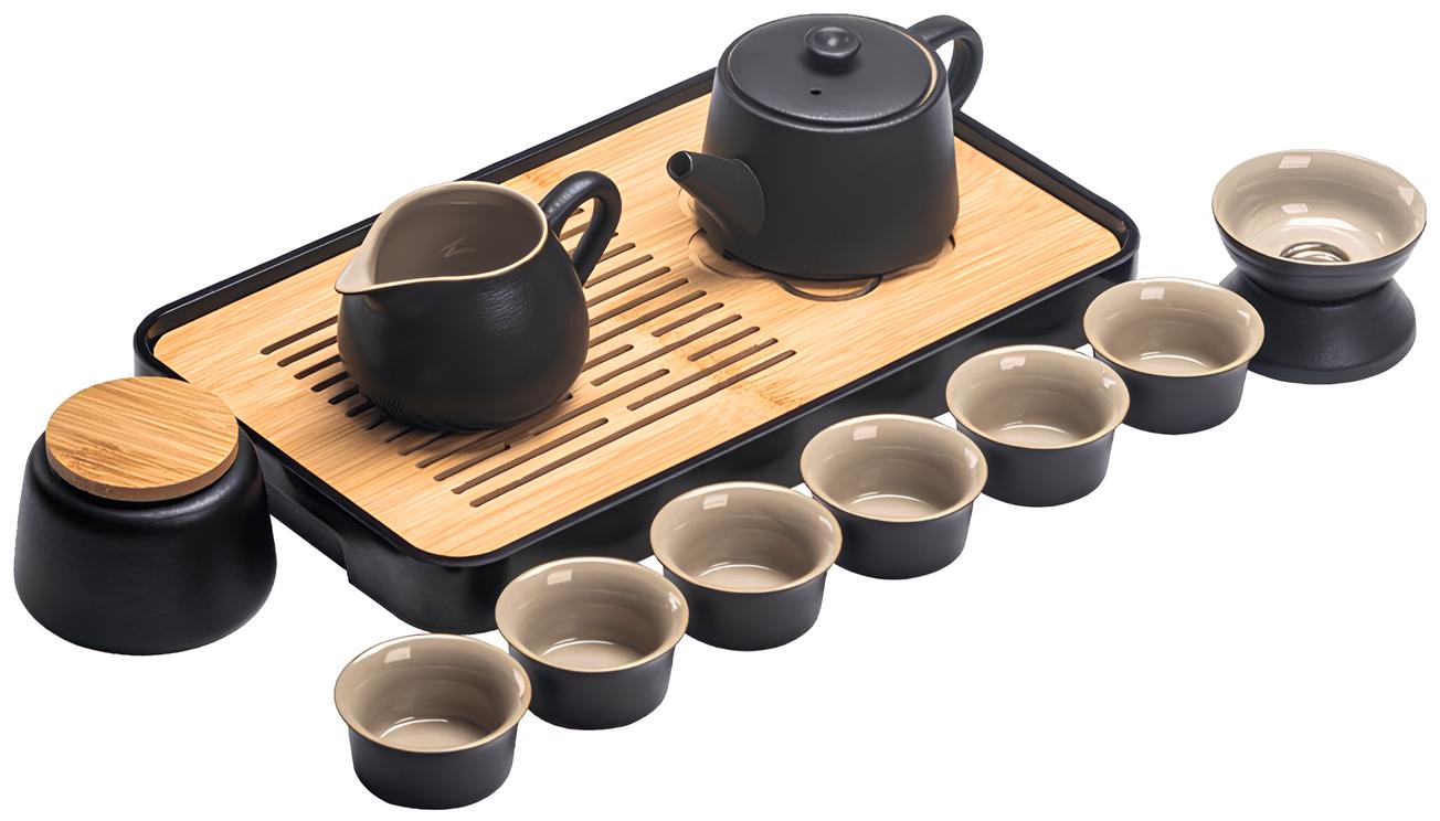 Чайный сервиз, выполненный в стиле восточной дзен-эстетики, воплощает гармонию и спокойствие. Классическая черная глазурь создан из нижних слоев глиняной породы с добавлением железа, что придает ей глубину и прочность.. Набор из 12 предметов станет идеальным выбором для ценителей чайной церемонии, которые ищут элегантность, функциональность и долговечность.
