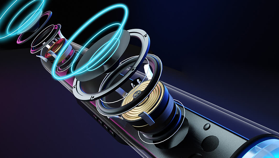 Skyworth Play 1D оснащен интеллектуальной системой RGB-подсветки, которая превращает обычную акустическую систему в яркий элемент интерьерного декора. Многоцветные световые эффекты создают особую атмосферу уюта во время работы или драйва во время отдыха, плавно меняя оттенки и подчеркивая современный стиль вашего рабочего места. Для тех, кто ценит минимализм, подсветку можно легко настроить под текущее настроение или полностью отключить, превращая саундбар в строгий офисный аксессуар. Визуальная составляющая гармонично дополняет качественный звук, делая процесс использования устройства более эмоциональным и превращая каждое прослушивание в маленькое визуальное шоу.