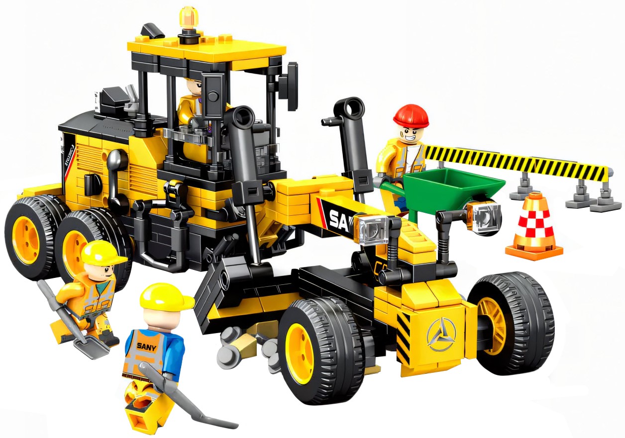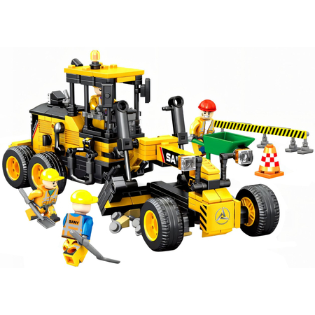 Конструктор «Грейдер для дорожных работ» от фабрики Сембо из 451 детали полностью совместим с Лего, в собранном виде имеет размер 20*10*9 см. Соберите прекрасный образец строительной техники: трехосный грейдер на колесном шасси. Поворачивайте переднюю ось в нужном направлении, поднимайте и опускайте скребок, выравнивайте автодорожное полотно — изучайте работу дорожных служб. В набор входят 4 минифигурки персонажей: водитель в жилете и каске, рабочий в каске с тачкой, два дорожных работника в касках с лопатами. Пополняйте свою коллекцию Техник с нашим интернет-магазином.