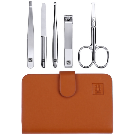 Профессиональный маникюрный набор для работы с ногтями, бровями и даже волосами в носу и ушах. В комплект входят ножницы, книпсер, пилочка, лопатка и пинцет. Поставляется в компактном чехле из искусственной кожи, который можно носить с собой в сумочке