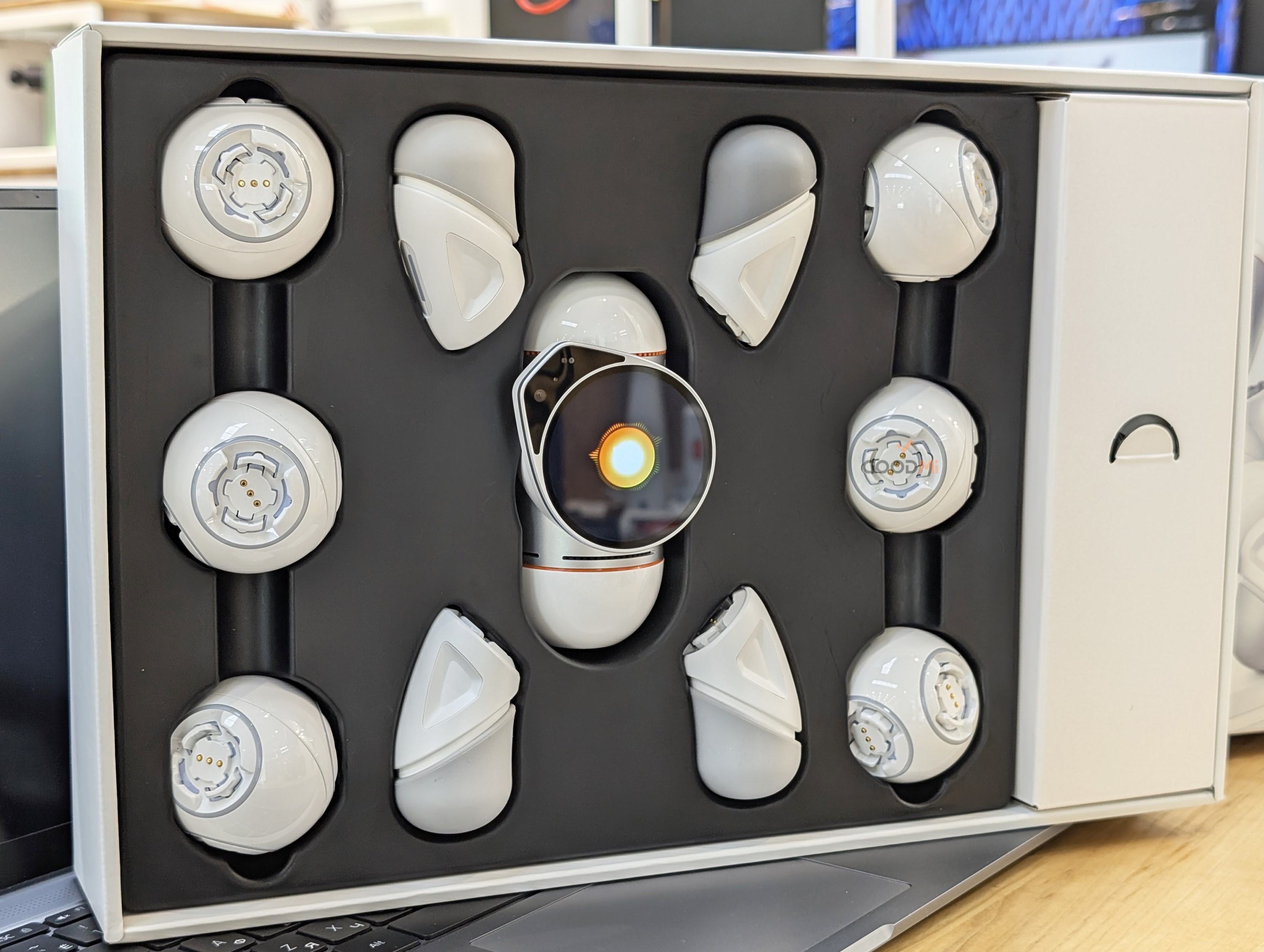 Модульный робот состоит из нескольких блоков, куда входят «мозг», состоящий из блока с дисплеем и камеры с датчиками, шарниры-суставы, ноги и удлиняющие модули.