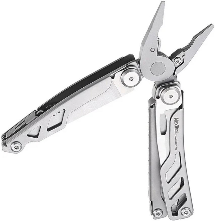 Мультитул NexTool Flagship Pro (NE0105) — универсальный инструмент, который пригодится вам дома, на даче, в туристическом походе и на работе. Выполненный из нержавеющей стали он включает в себя множество инструментов: пилу, острогубцы, плоскогубцы, отвертки, нож и ножницы, открывашку, линейку, велосипедный ключ, стропорез и стеклобой.