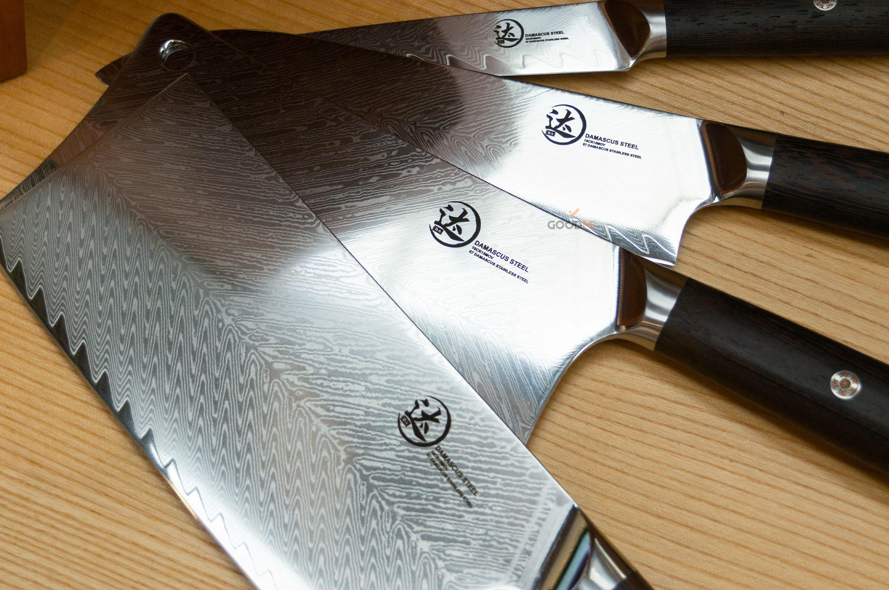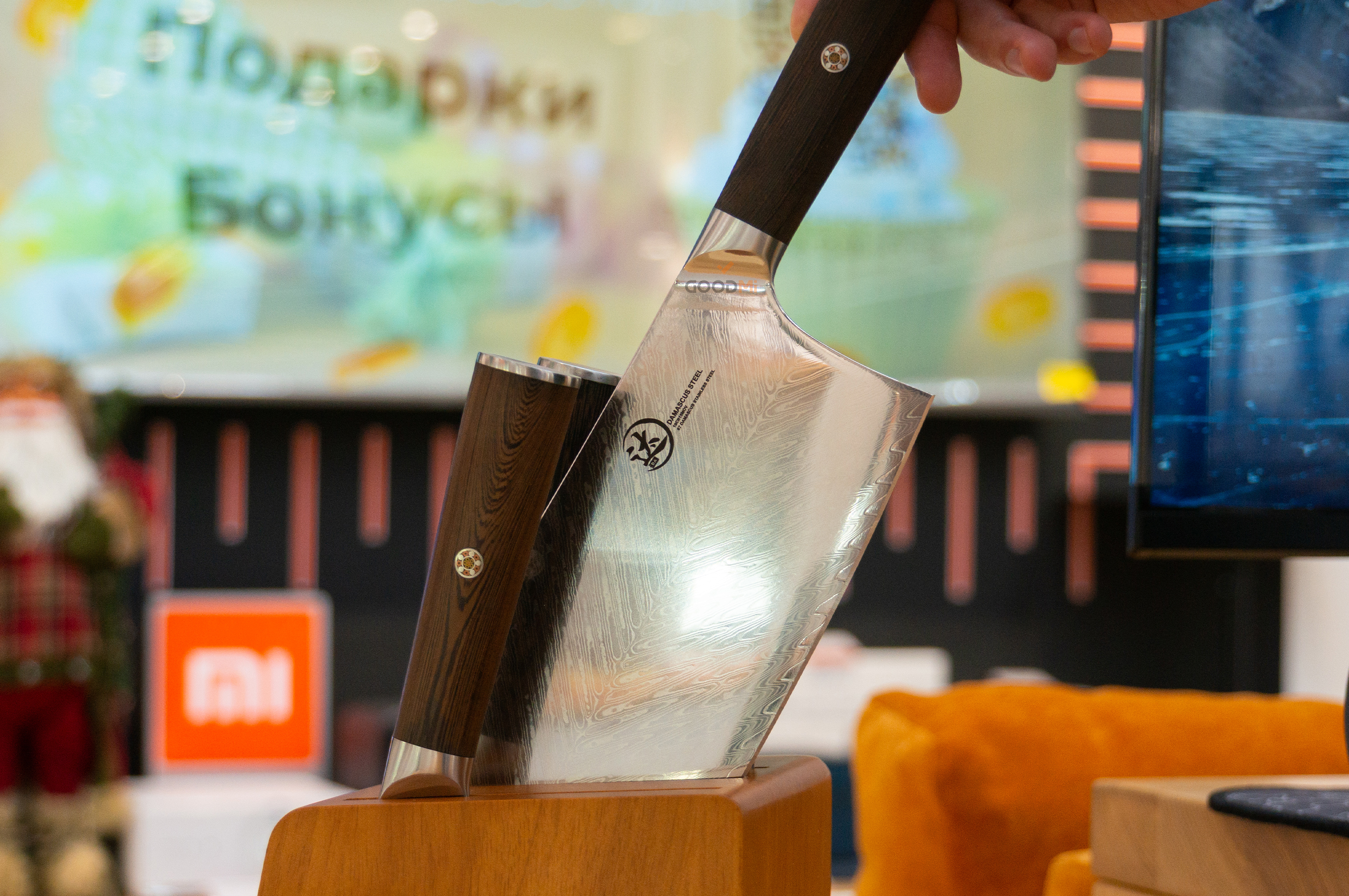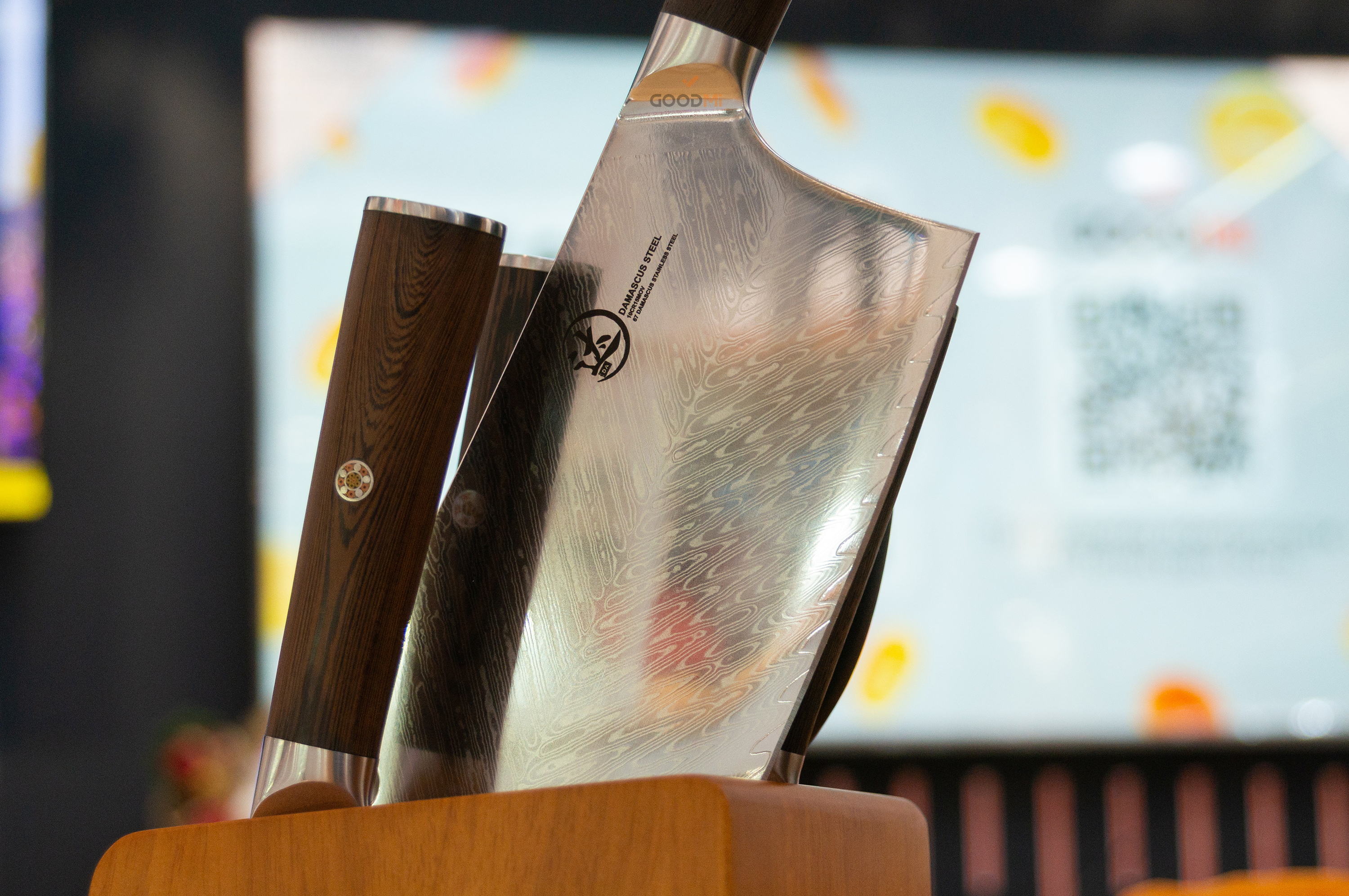 Основным материалом для изготовления этих ножей служит 67-слойная композиционная дамасская сталь, которая обеспечивает исключительную прочность и долговечность изделий. Каждый нож имеет краевой угол заточки в 15 градусов, что гарантирует идеальную остроту и позволяет легко и аккуратно нарезать даже самые тонкие продукты. Все ножи прошли сложный многоэтапный процесс — многократное складывание и ковку стали, затем несколько циклов закаливания и точной шлифовки. Этот тщательный технологический процесс обеспечивает не только высокие эксплуатационные характеристики, но и красивый уникальный узор на лезвии, характерный для дамасской стали.
