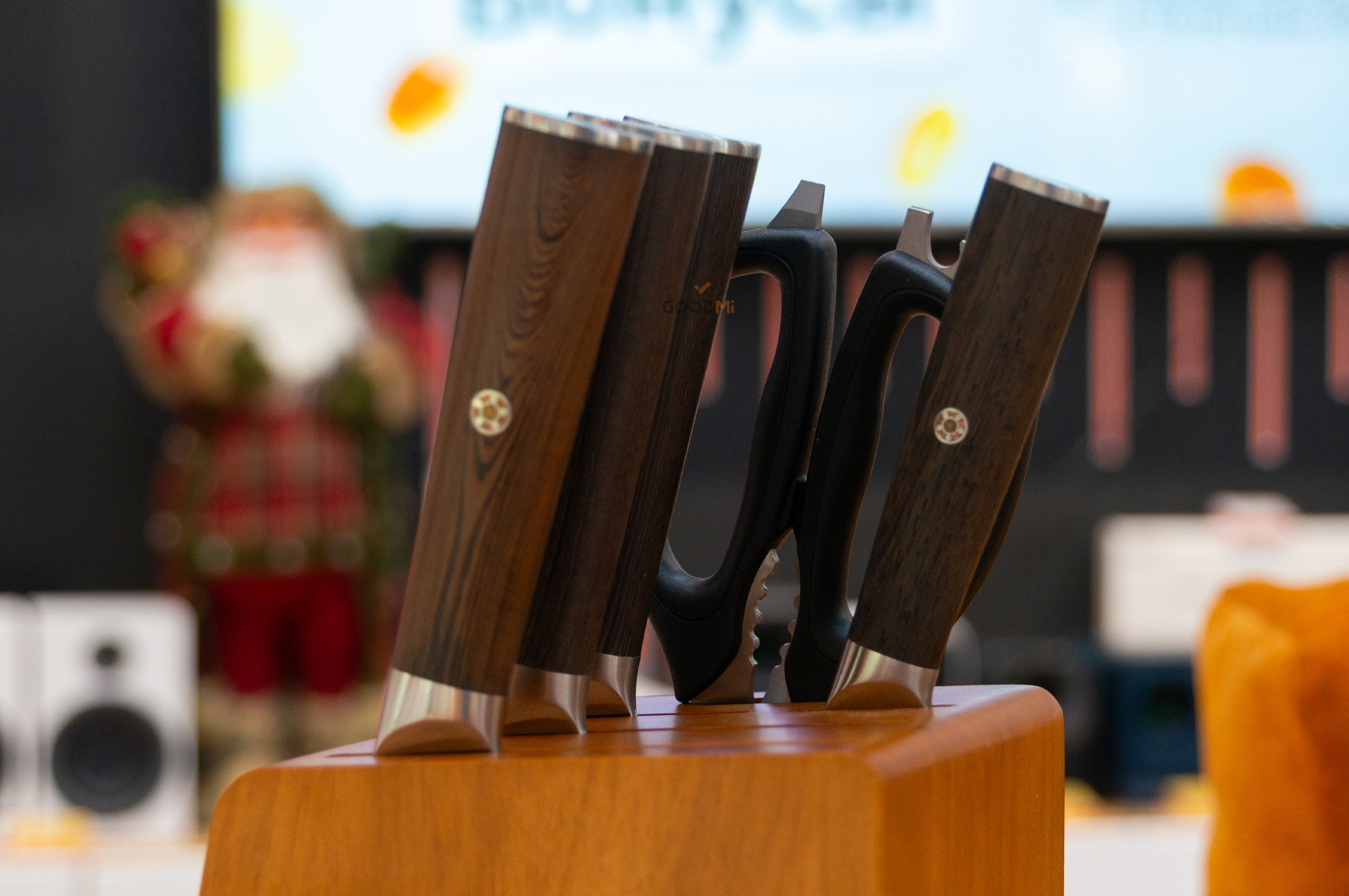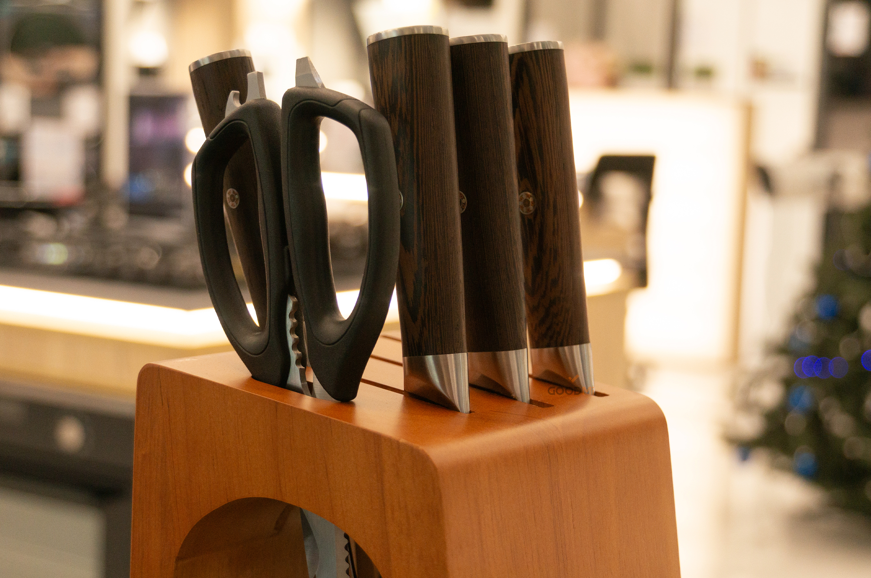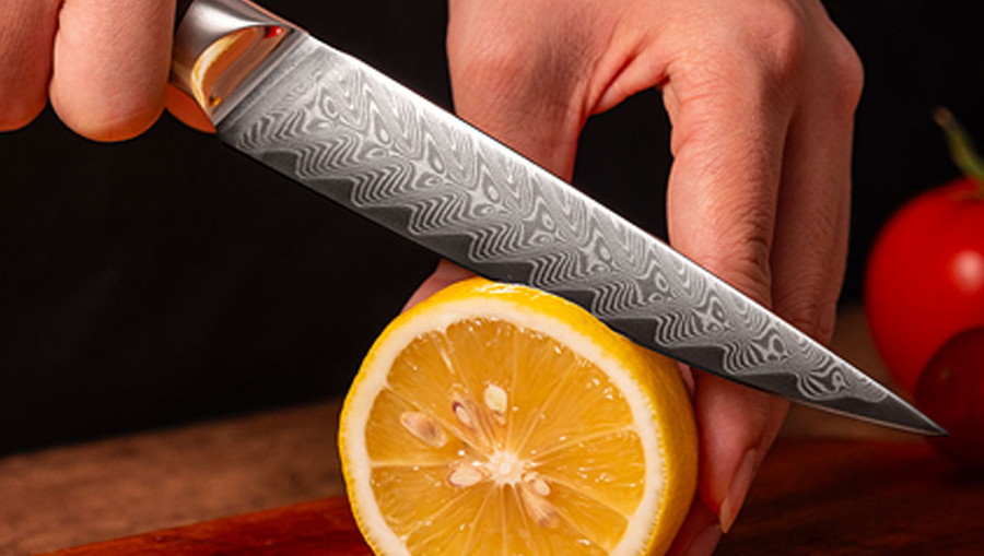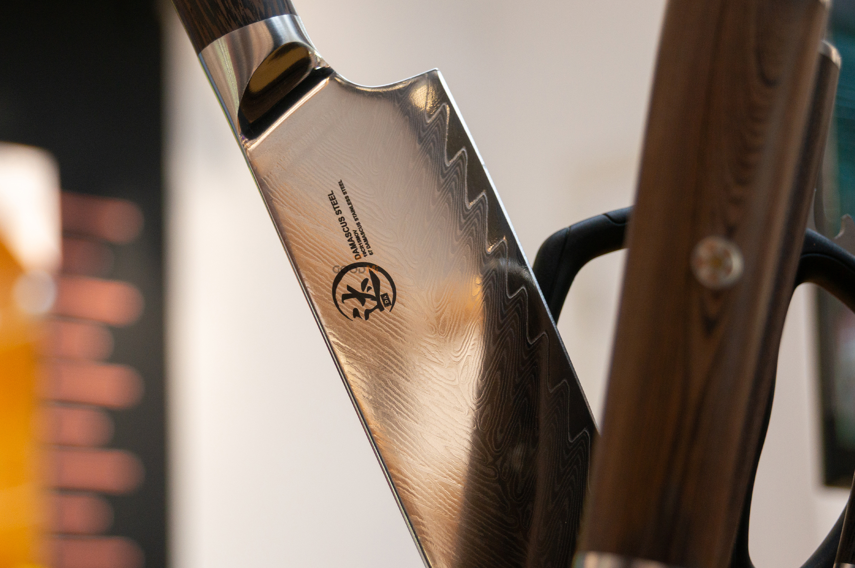 Основным материалом для изготовления этих ножей служит 67-слойная композиционная дамасская сталь, которая обеспечивает исключительную прочность и долговечность изделий. Каждый нож имеет краевой угол заточки в 15 градусов, что гарантирует идеальную остроту и позволяет легко и аккуратно нарезать даже самые тонкие продукты. Все ножи прошли сложный многоэтапный процесс — многократное складывание и ковку стали, затем несколько циклов закаливания и точной шлифовки. Этот тщательный технологический процесс обеспечивает не только высокие эксплуатационные характеристики, но и красивый уникальный узор на лезвии, характерный для дамасской стали.