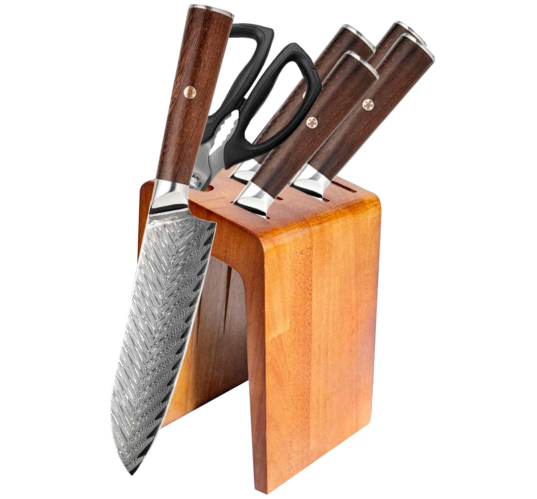 Дамасский нож — это символ высочайшего качества и уважения к вековым традициям кузнечного мастерства. Считается, что каждый мастер лично подбирает уникальные пропорции материалов при создании своих ножей, что делает каждое изделие по-настоящему неповторимым. Набор ножей из дамасской стали Damascus Knife Sets выполнен в элегантном, сдержанном дизайне, который отлично впишется в любую кухню, подчеркивая утонченность и стиль. Особое внимание уделено ручкам ножей — они изготовлены из массивного дерева, что не только придает инструментам прочность и долговечность, но и обеспечивает удобный, надежный хват для комфортной работы.