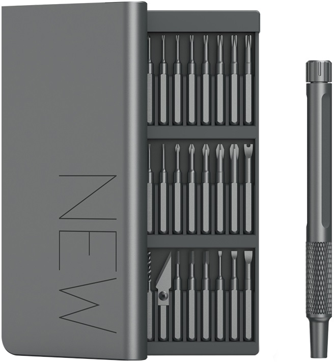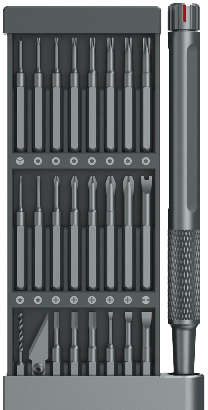 Набор включает 24 штуки широко используемых бит и прочный магнитный ящик для их хранения. Эти отвертки изготовлены из высококачественного сплава S2 и имеют твердость до 60HRC. Они надежны и прочны, а все поверхности бит матовые, что обеспечивает надежный захват во время использования.