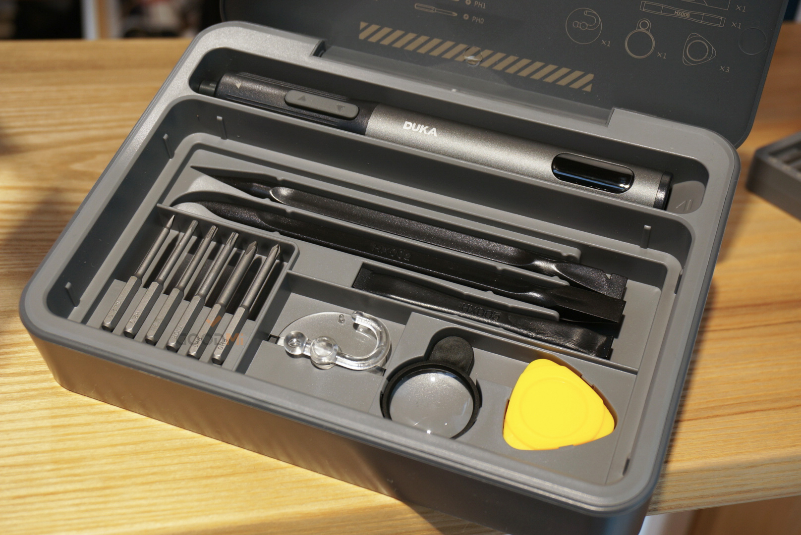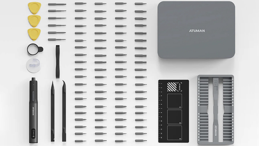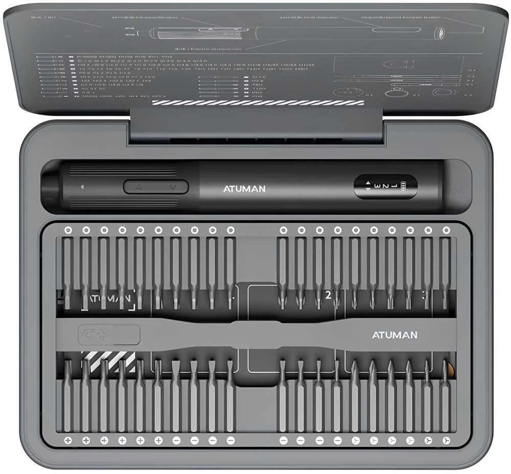 Электрическая отвертка Atuman E3 поставляется с полным набором из 86 насадок различных форм и размеров, что позволяет выполнять самые разнообразные работы. Все насадки изготовлены из высококачественной стали, обеспечивающей долговечность и надежность в использовании. В комплекте также имеется удобный кейс для хранения и переноски насадок и отвертки, магнитная позиционирующая пластина, присоска, увеличительное стекло, медиатор и лопатки.