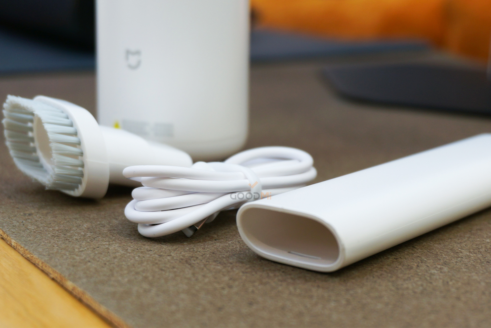 В комплект входят две насадки: со щетинками и плоская щетка. Для подключения к сети используется кабель USB Type-C. Бесщеточный электродвигатель совершает до 88 000 оборотов в минуту, благодаря чему достигается сила всасывания 13 000 Ра. Это позволяет захватывать не только мелкие, но и крупные загрязнения.