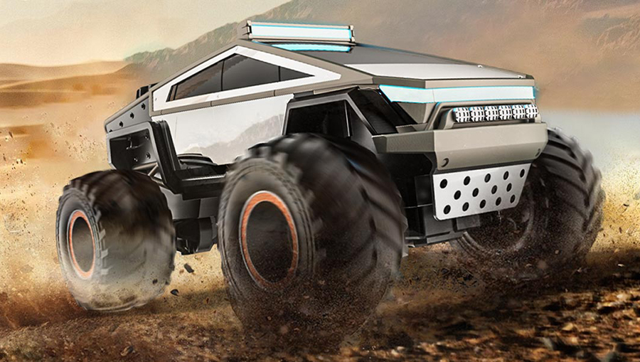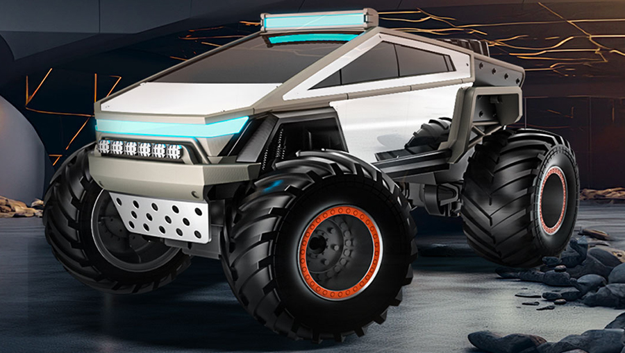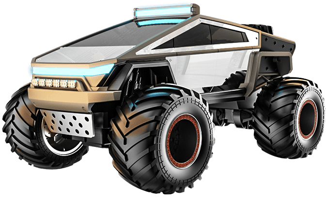 Радиоуправляемая машина в стиле киберпанк представляет собой футуристический пикап-монстр с агрессивными угловатыми формами и массивными огромными колёсами, идеально созданный для истинных любителей техники будущего и экстремальных приключений. Эта модель сочетает в себе мощный, брутальный дизайн, выдающуюся проходимость по бездорожью и передовые технологии беспроводного управления, обеспечивая реалистичный опыт вождения в любых условиях. Каждая деталь проработана с ювелирной точностью: от гигантских колёс с яркими оранжевыми ободами и глубоким протектором, способным преодолевать препятствия, до реалистичной передней решётки радиатора с металлическим блеском, светодиодных фар с динамическим свечением и множества мелких элементов — таких как выштамповки на кузове, воздухозаборники и киберпанковские неоновые акценты, — которые создают полную имитацию настоящего монстр-трака из мира высоких технологий.