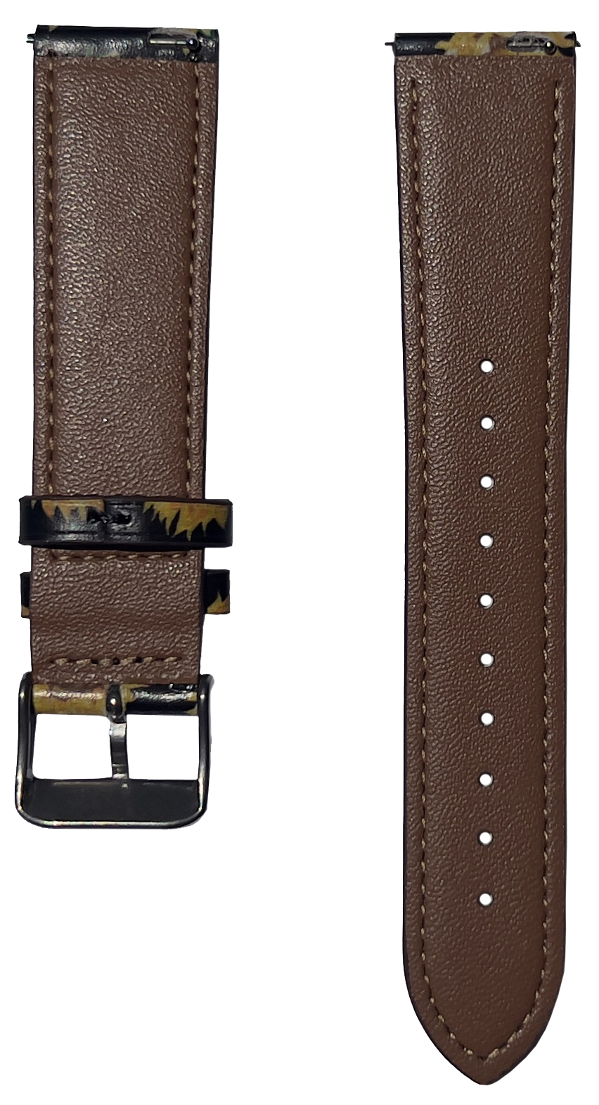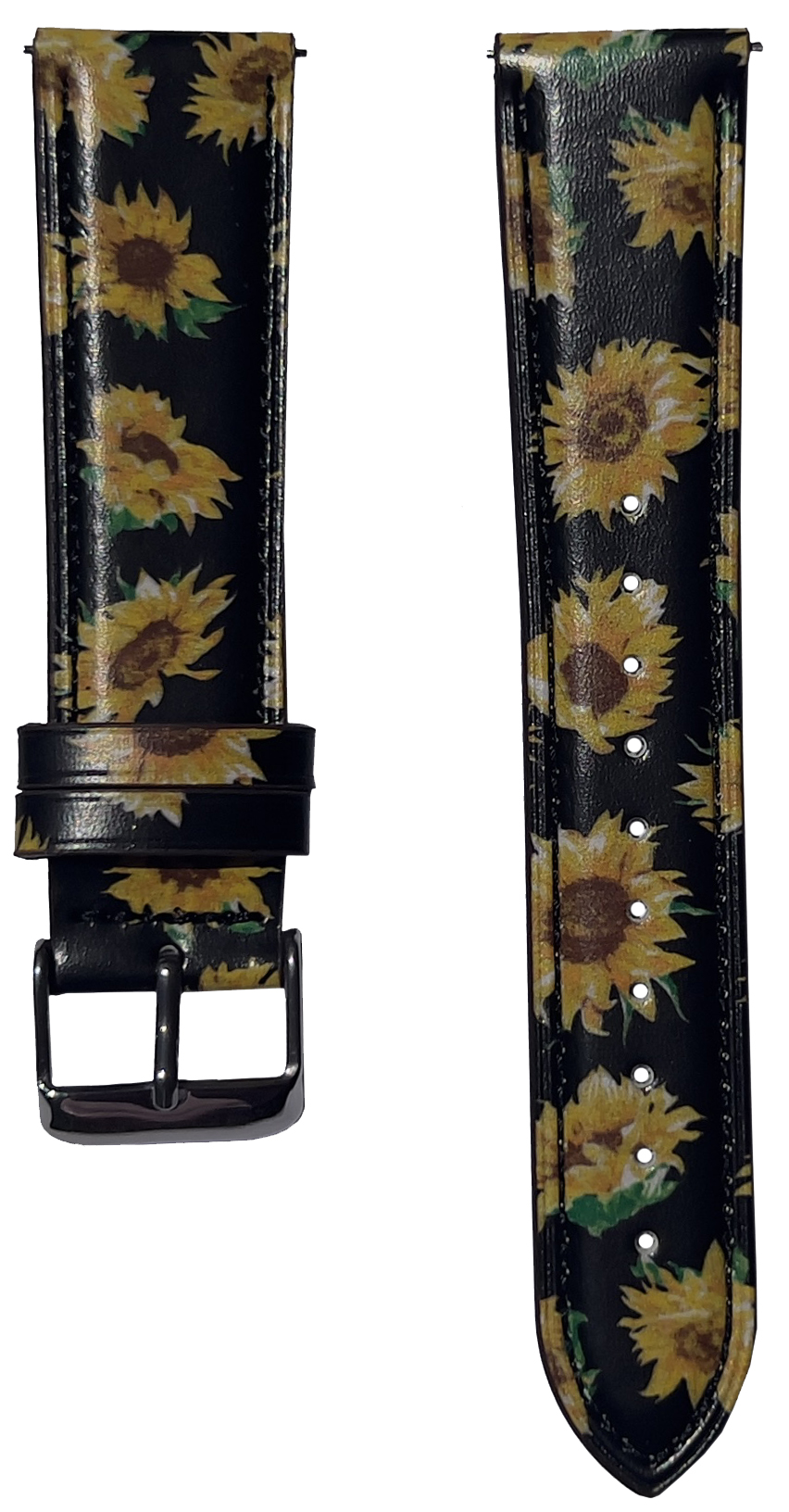 Ремешок кожаный 20mm строчка Черный с подсолнухами