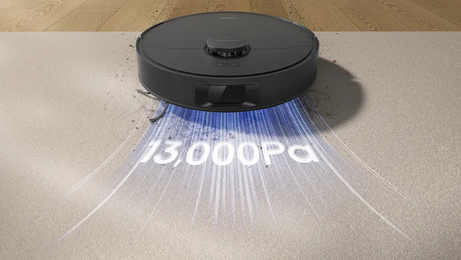 Робот-пылесос Dreame D20 оборудован системой Vormax, которая обеспечивает мощность всасывания до 13000 Па. Эта высокая производительность позволяет устройству легко справляться с пылью, мелким мусором, крупными частицами и застрявшими ворсинками на различных типах напольных покрытий, включая ламинат, плитку, ковры и ковролин. Уникальная конструкция воздушного канала снижает потери давления, что обеспечивает стабильную и эффективную работу робота на протяжении всего цикла уборки. Dreame D20 предлагает пять уровней мощности всасывания, позволяя пользователю адаптировать устройство под конкретные условия — от тихой и бесшумной уборки в ночное время до интенсивной очистки сильно загрязненных зон.