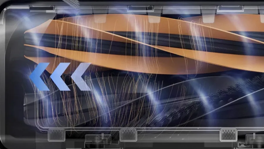 Одной из основных проблем при уборке является запутывание волос на валиках щеток, что существенно снижает эффективность и требует частого обслуживания. Dreame D20 Pro эффективно решает эту проблему благодаря передовой системе HyperStream, включающей двойные щетки с уникальной геометрией и оптимизированным воздушным потоком. Передняя щетка изготовлена из прочного силикона с гибкими лопастями, которые легко удаляют мусор с различных поверхностей, не оставляя царапин. Вторичная щетка обеспечивает дополнительное всасывание и надежное удержание частиц. Особое внимание уделено конструкции щеточного блока, который позволяет воздуху проходить максимально свободно, предотвращая засорение и застревание волос, что значительно упрощает процесс уборки и повышает её качество.
